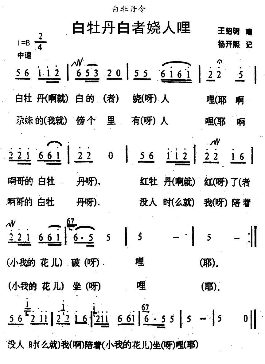 白牡丹白者娆人哩 青海花儿 白牡丹令