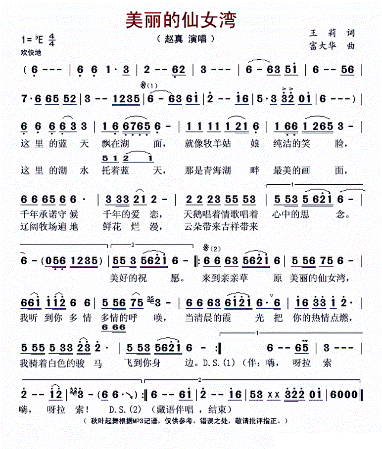 - [歌谱] 草原的月亮 赵真 昂格丽玛
