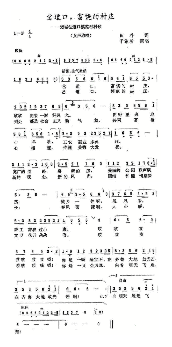 岔道口 富饶的村庄 扫描谱 诸城岔道口模范村村歌