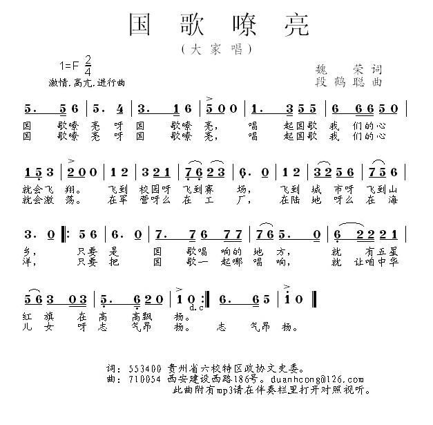 - [歌谱] 国歌嘹亮