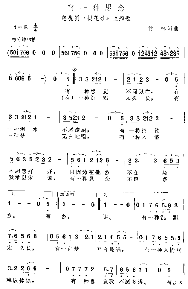 - [歌谱] 有一种思念不愿多讲 电视剧 樱花梦 主题歌
