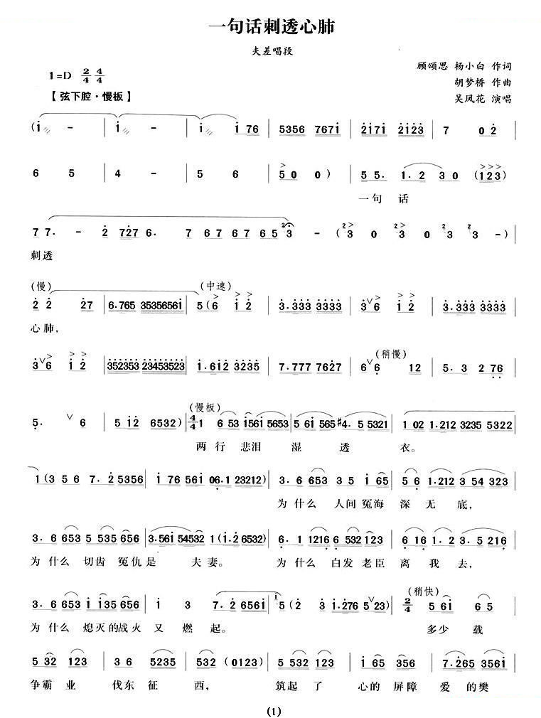 一句话刺透心肺 吴王悲歌 夫差唱段 越剧唱谱