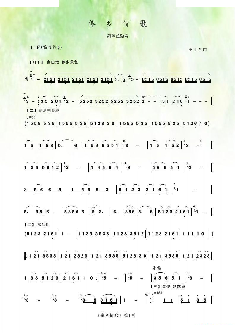 [巴乌谱,笛子谱,葫芦丝谱,箫谱]