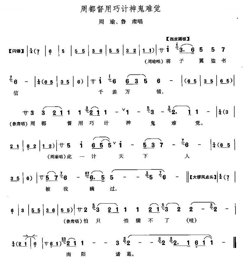 > 周都督用巧计神鬼难察 群英会 周瑜 鲁肃唱段 唱谱
