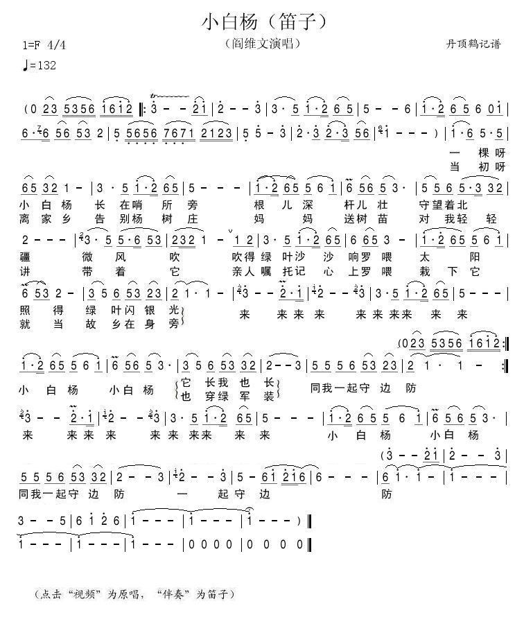 - [笛子谱] 小白杨