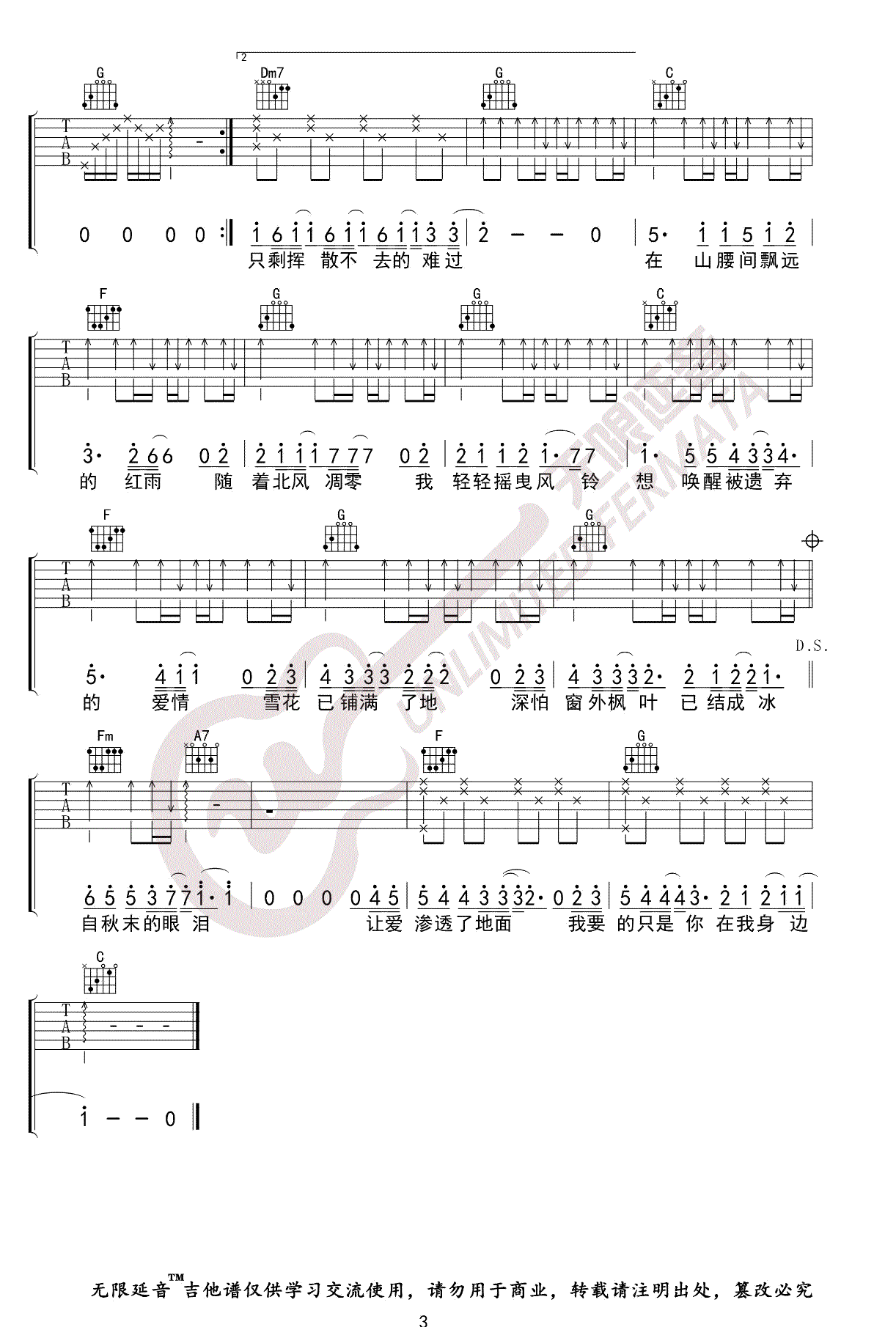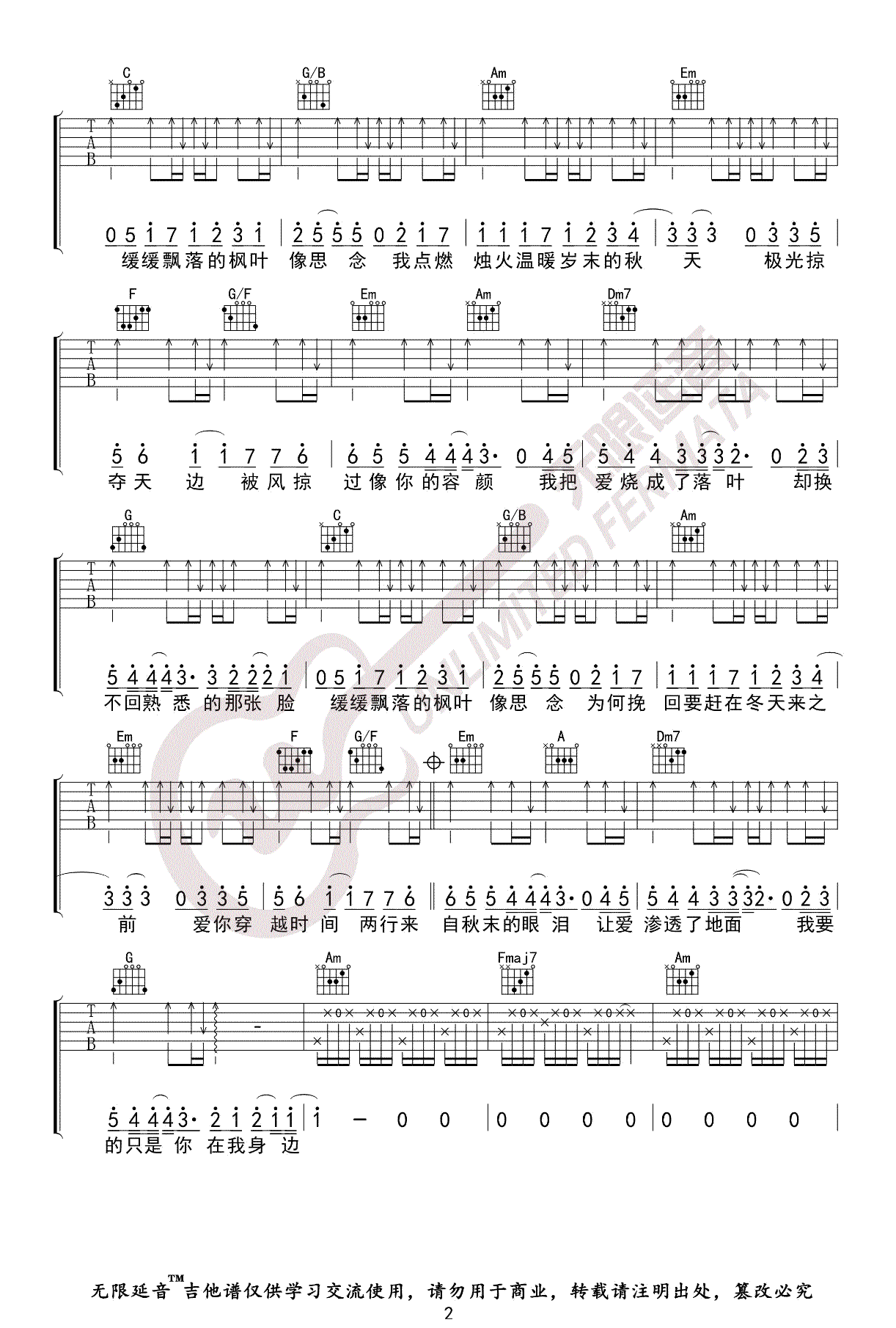 > 枫 C调指法原版编配