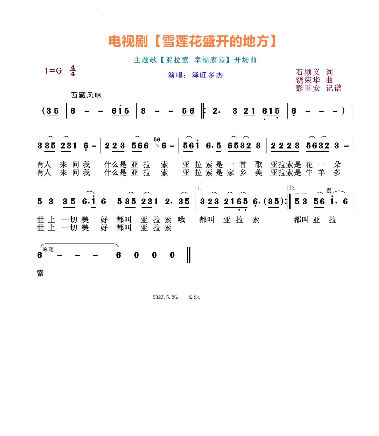 电视剧 雪莲花盛开的地方 开场曲