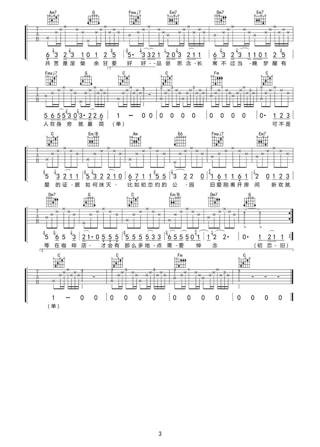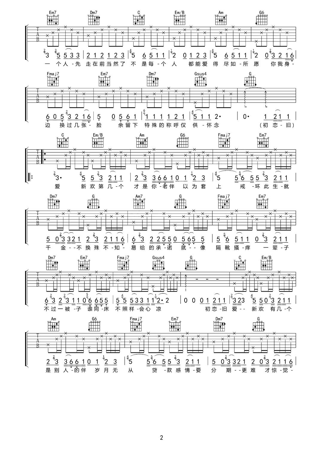 初恋旧爱新欢 G调原版编配