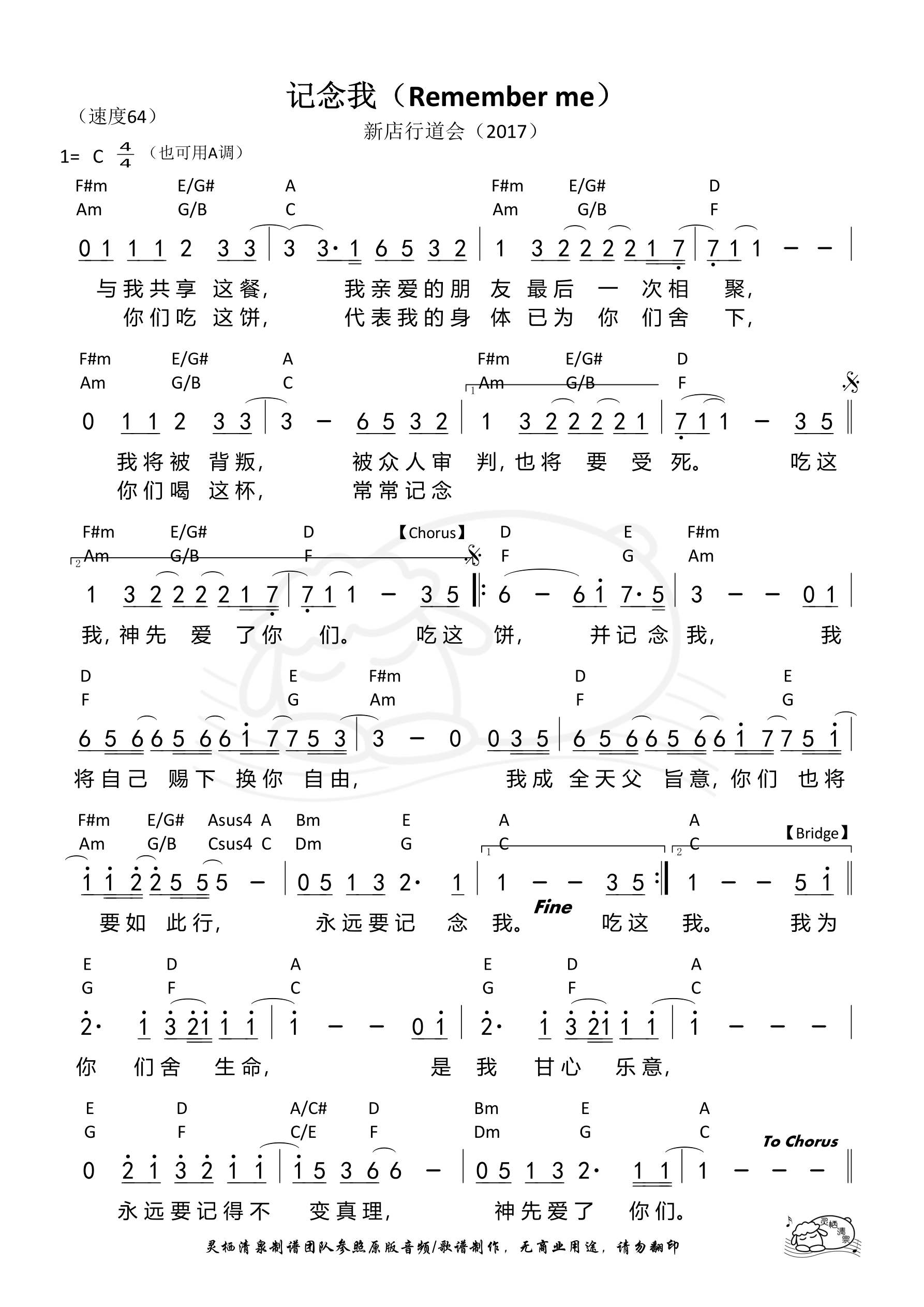 > 记念我 Remember me 新店行道会 第845首