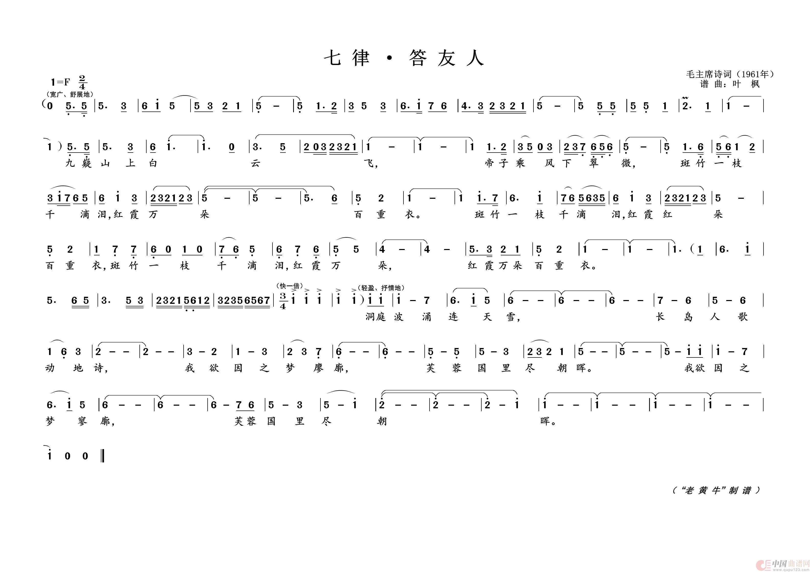 > 七律 答友人 为毛主席诗词谱曲