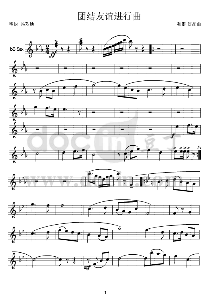 > 团结友谊进行曲 bB萨克斯 1
