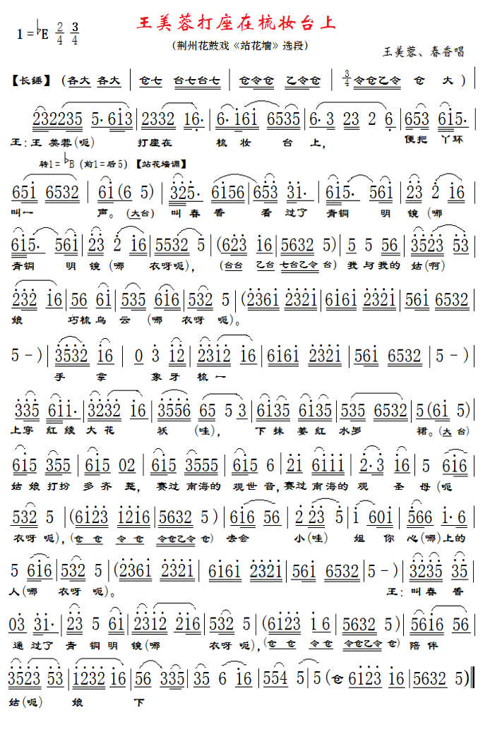 > 王美蓉打座在梳妆台上 荆州花鼓戏 站花墙 选段