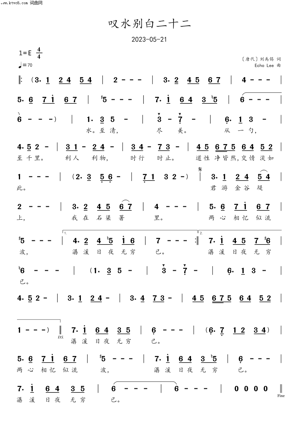 叹水别白二十二