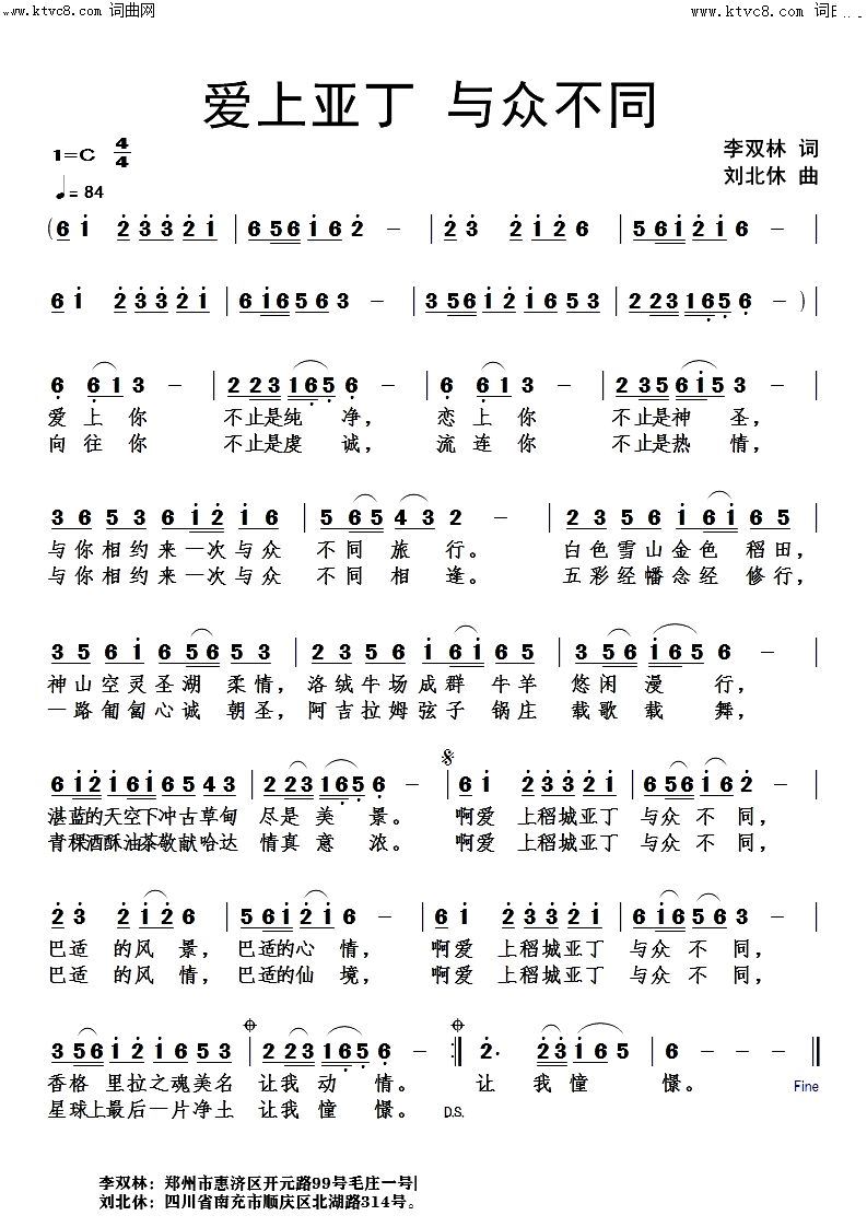> 爱上亚丁与众不同刘北休曲