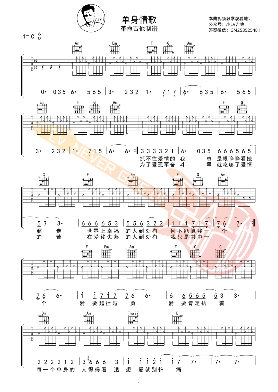 单身情歌 C调扫弦版