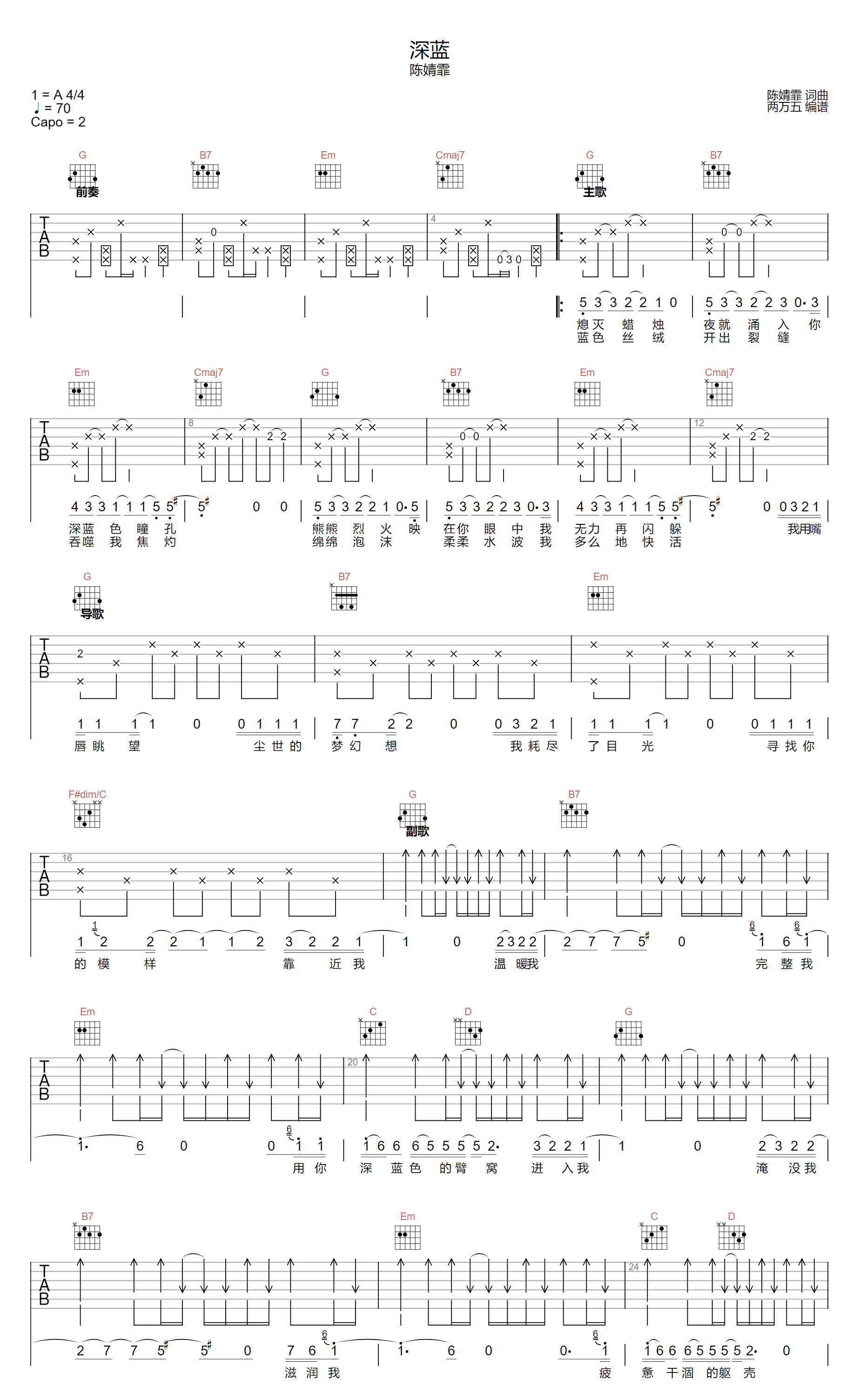 深蓝 G调指法原版编配