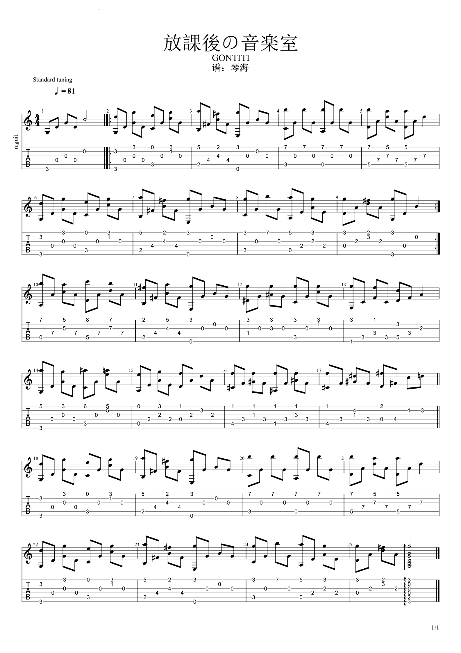 > 放課後の音楽室放学后的音乐教室单吉他指弹