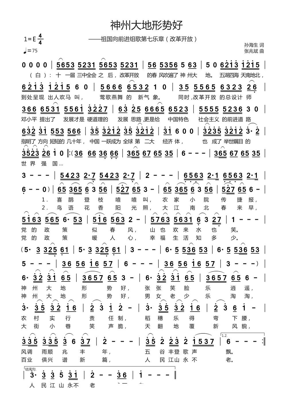 > 神州大地形势好 祖国向前进组歌第七乐章改革开放