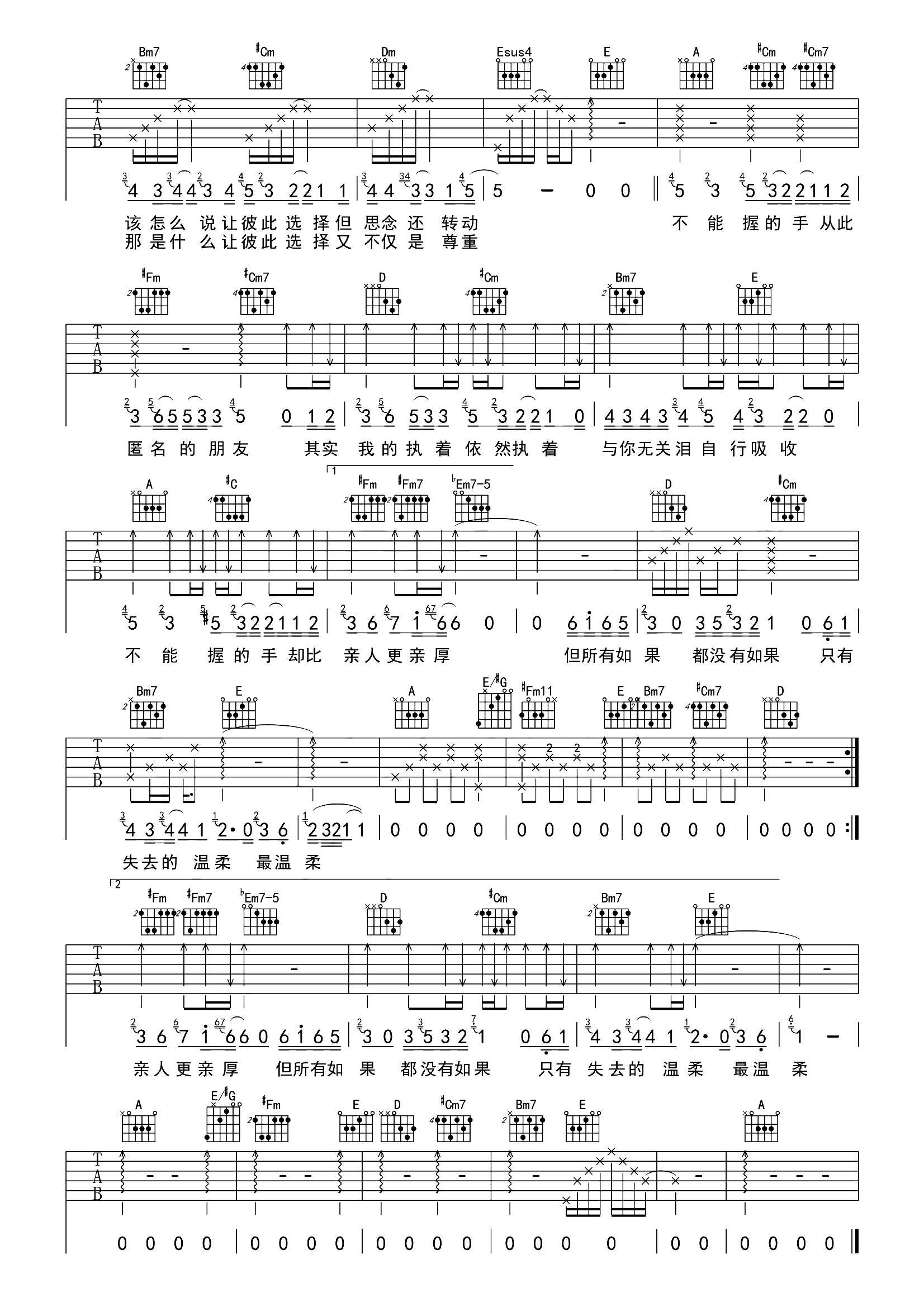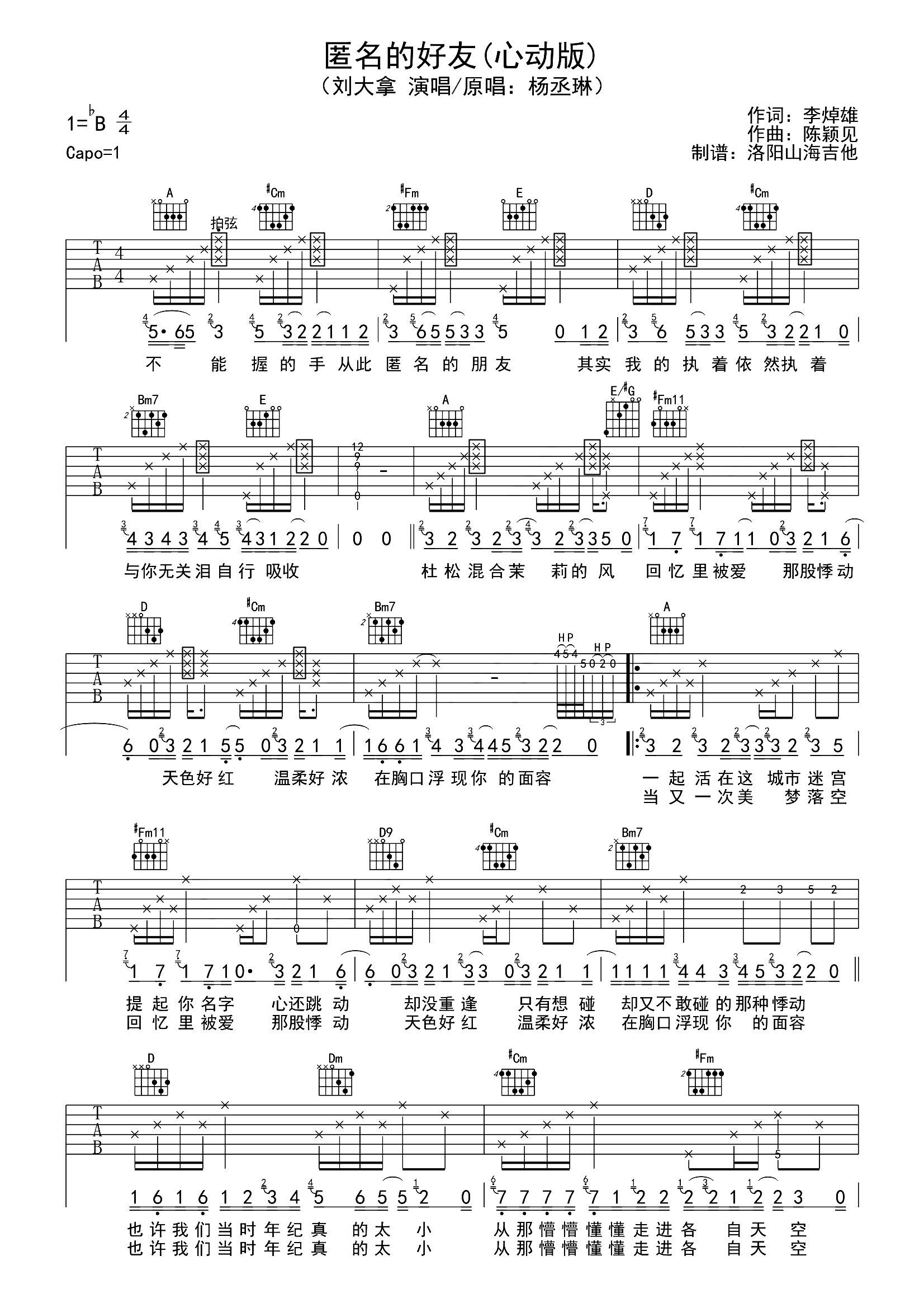 匿名的好友 A调指法编配