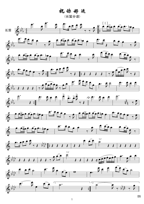 祝你好运 长笛 线