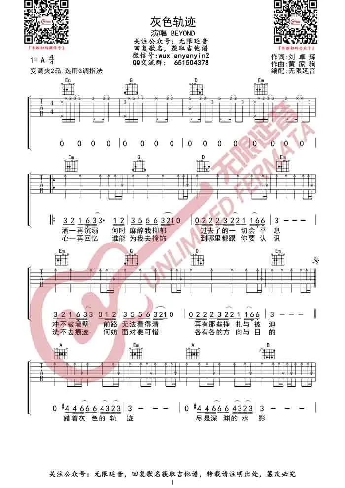 > 灰色轨迹 G调指法原版编配