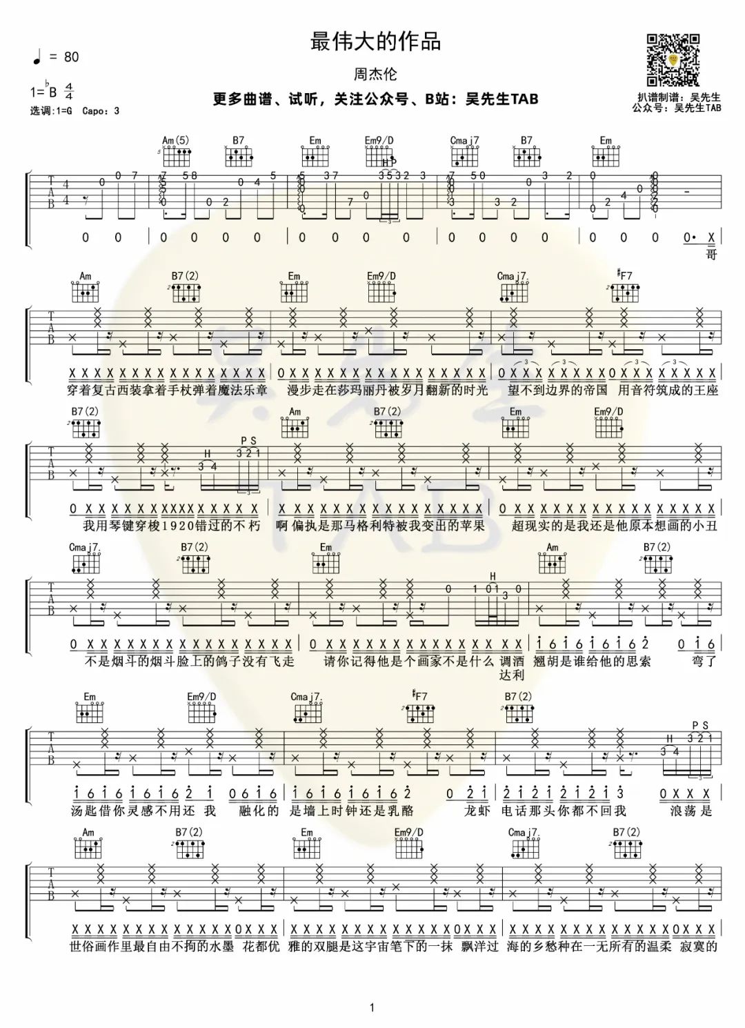 最伟大的作品 G调拍弦版