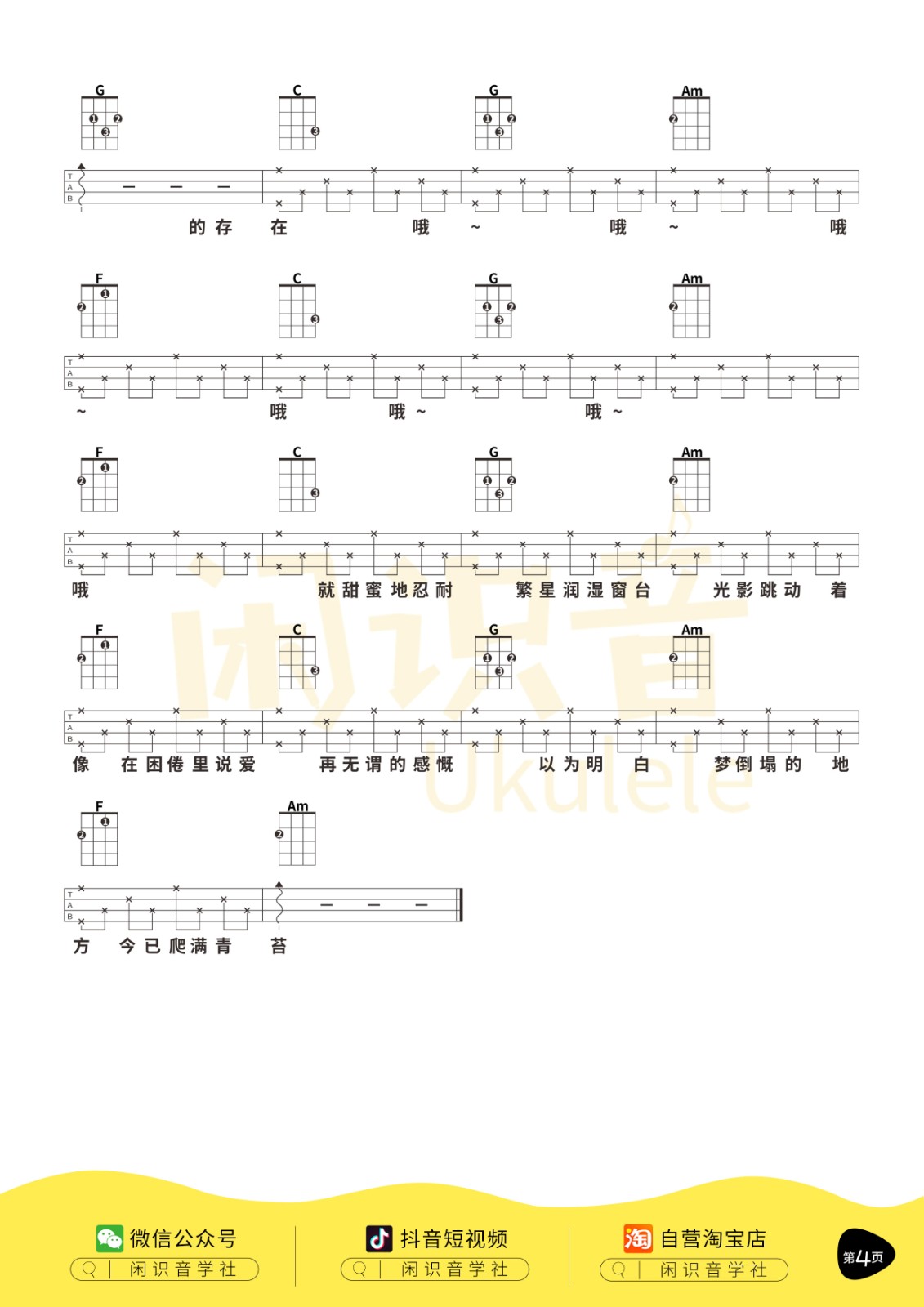 理想三旬尤克里里谱 C调四