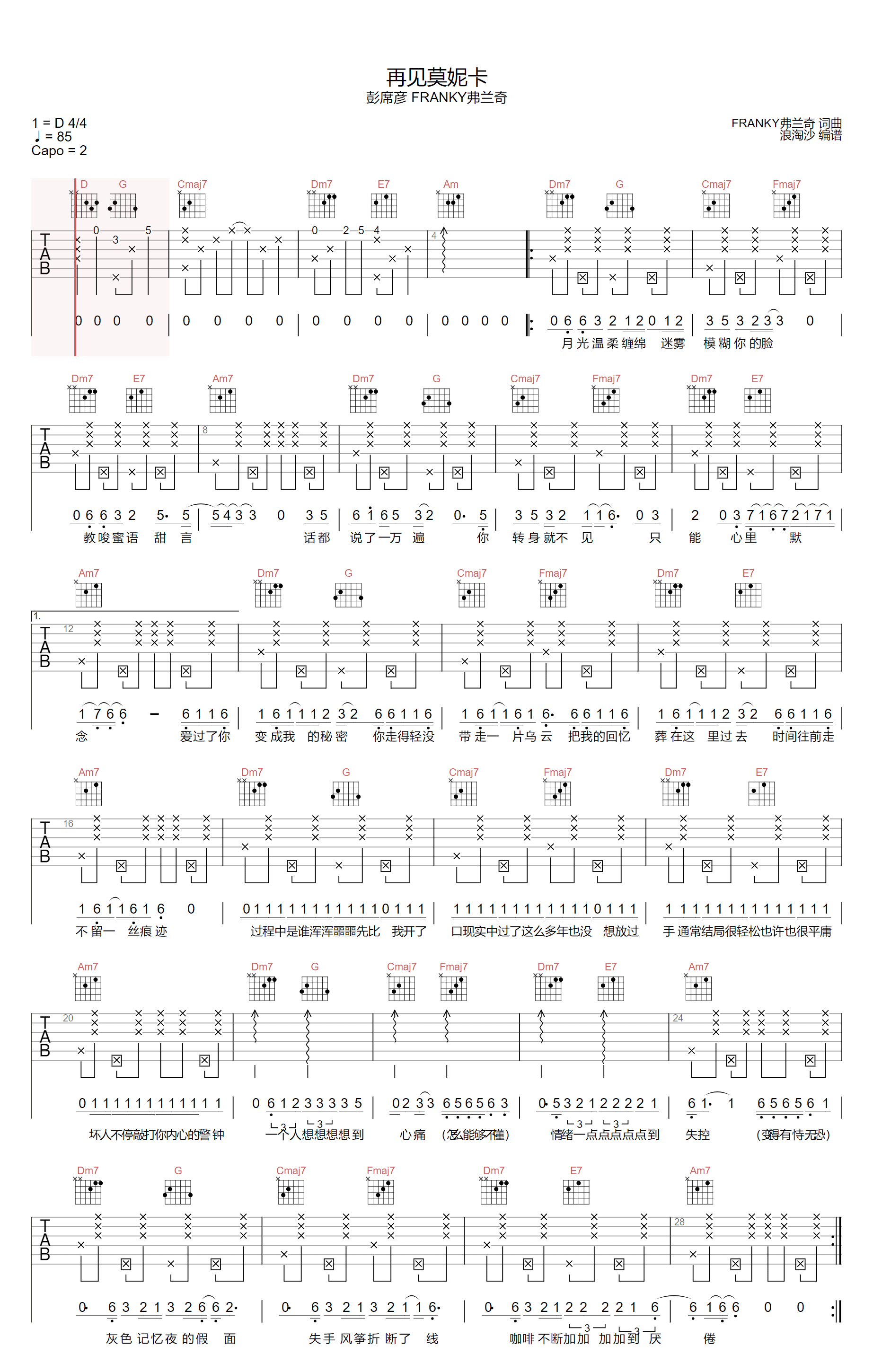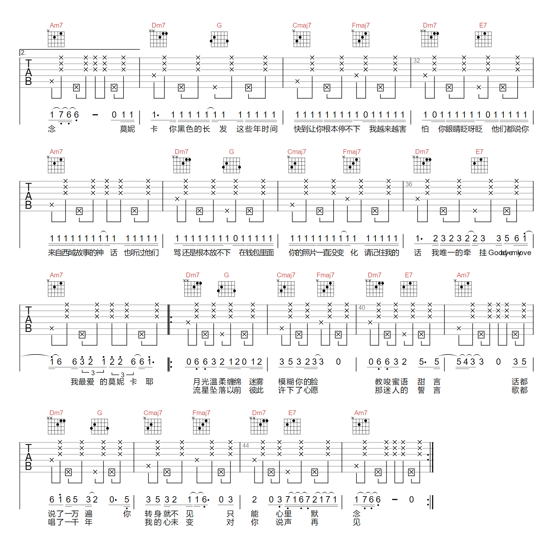> 再见莫妮卡 C调拍弦版