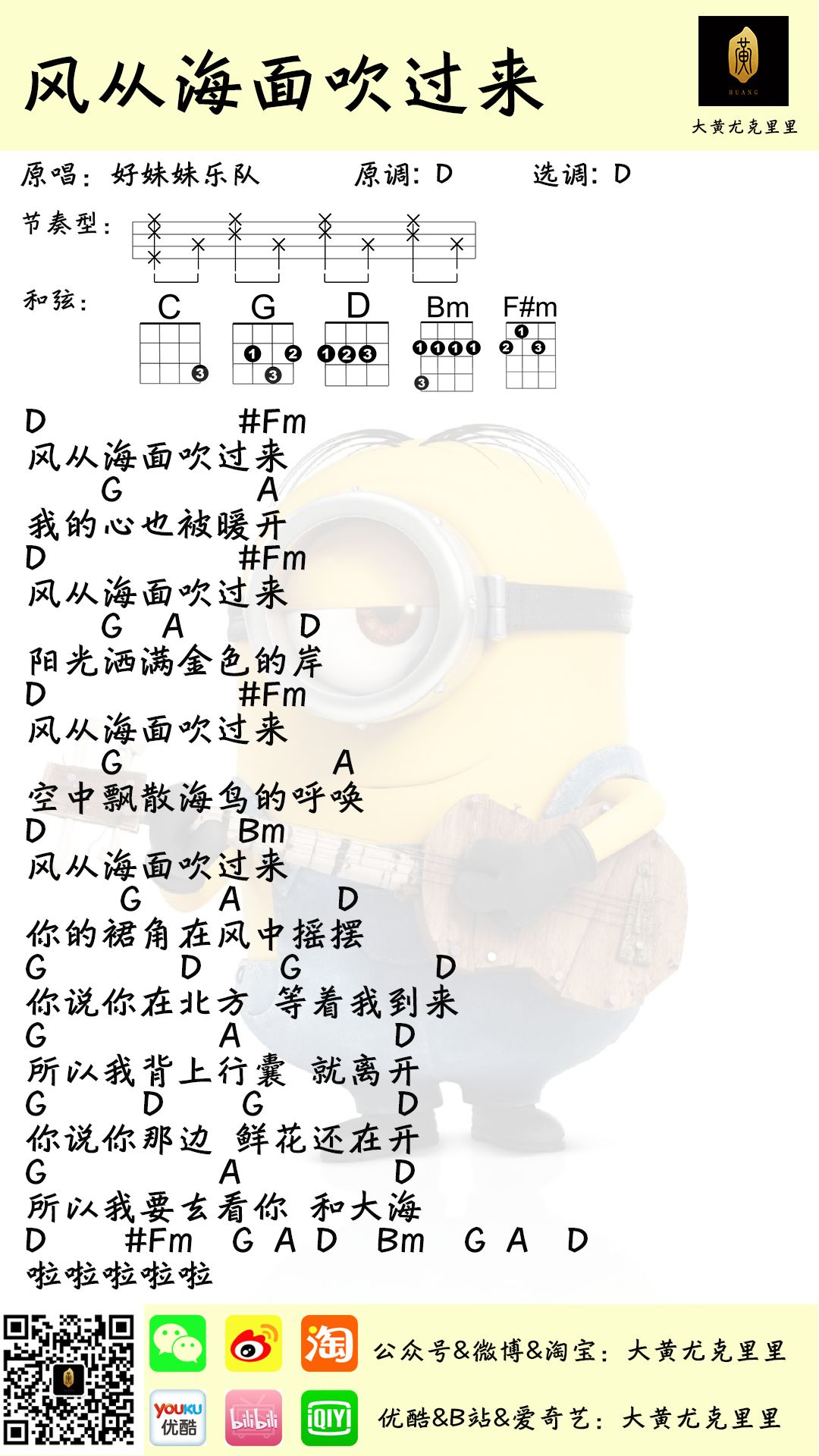 > 风从海面吹过来尤克里里谱 D调