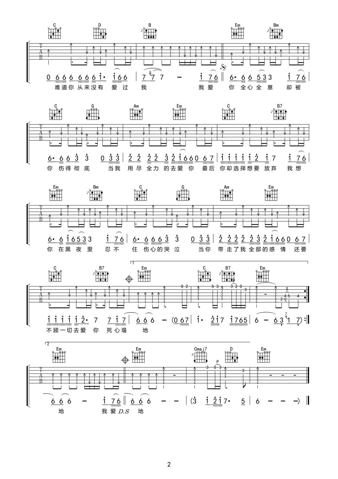 死心塌地去爱你 G调原版编配
