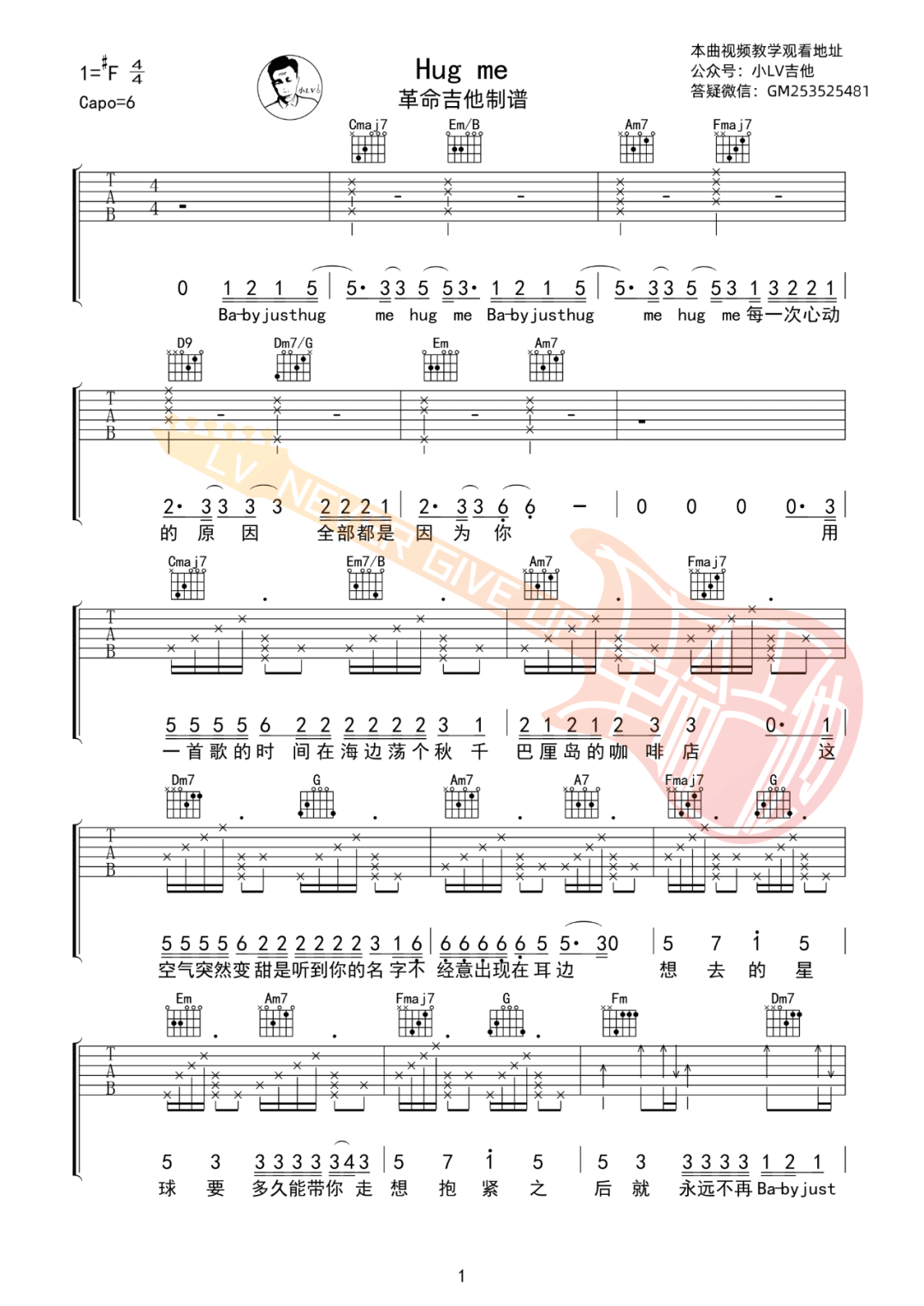 Hug Me C调原版编配