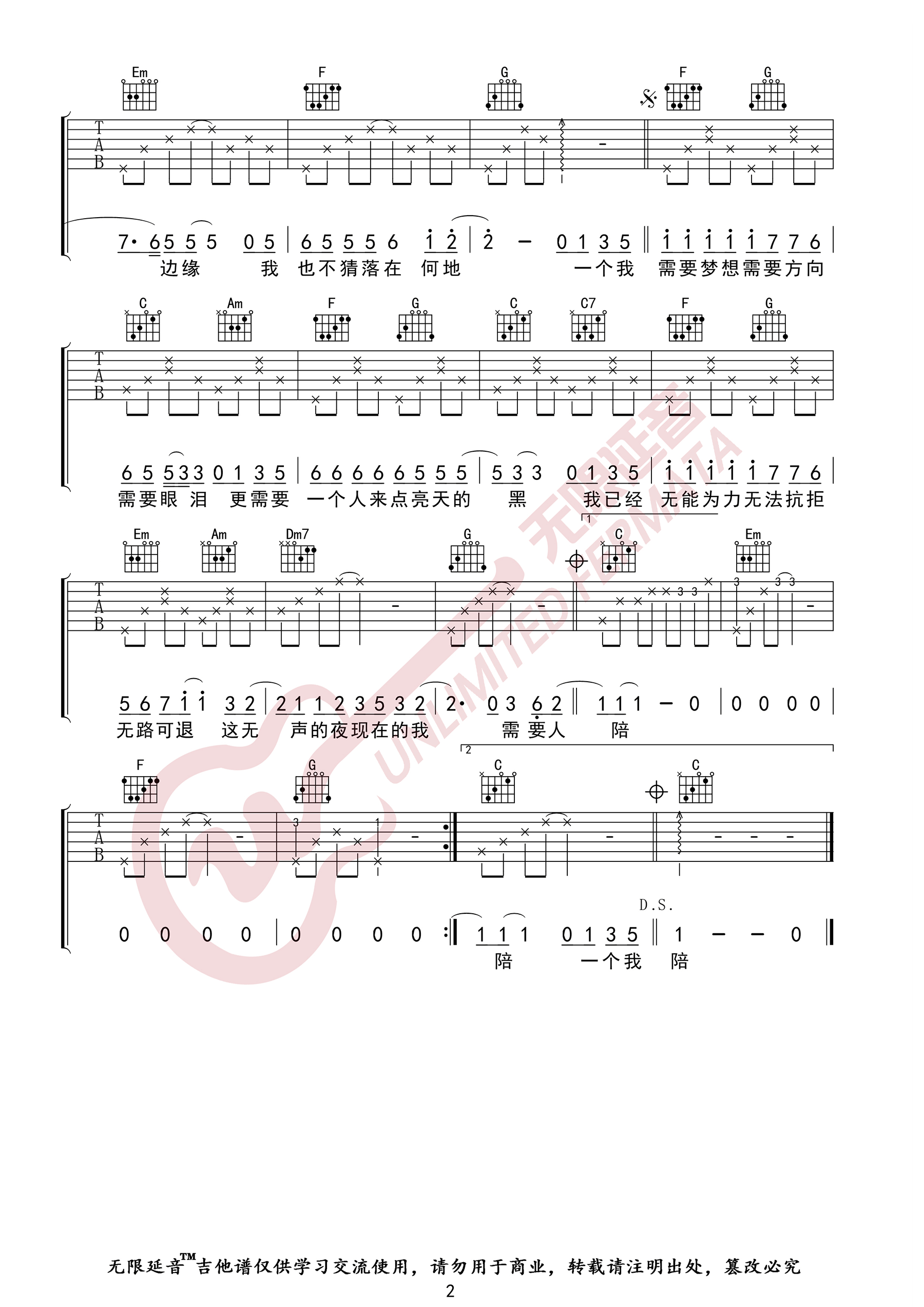 > 需要人陪 C调原版编配