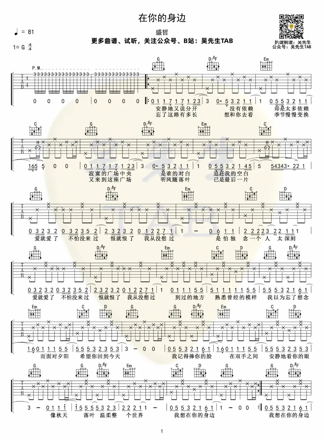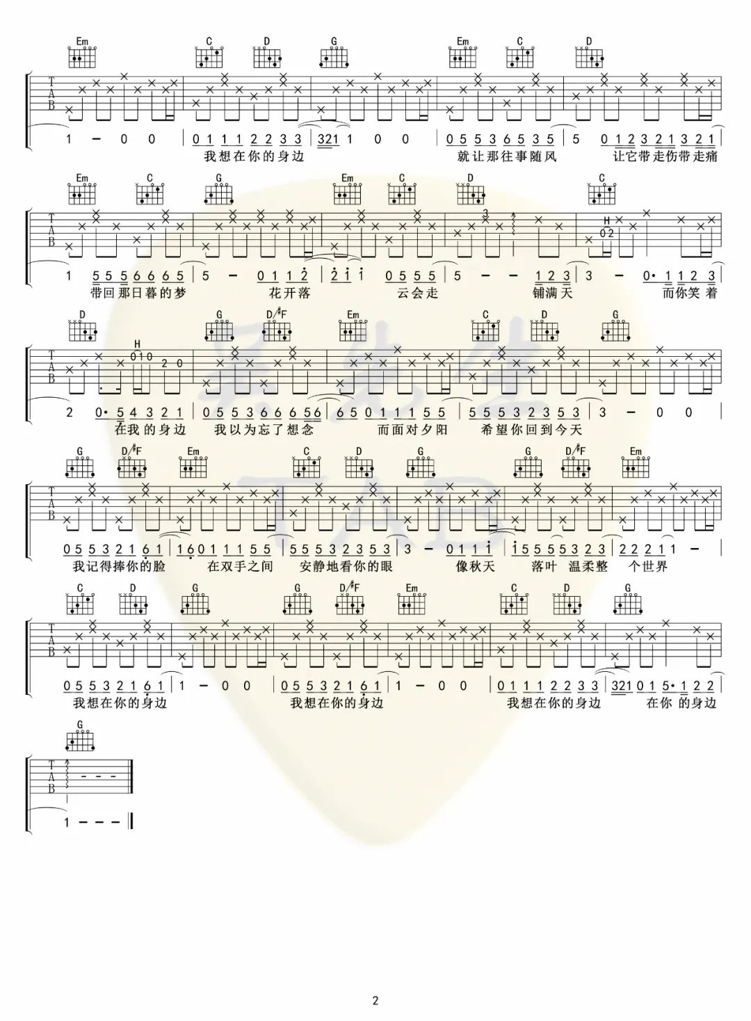 在你的身边 G调指法编配