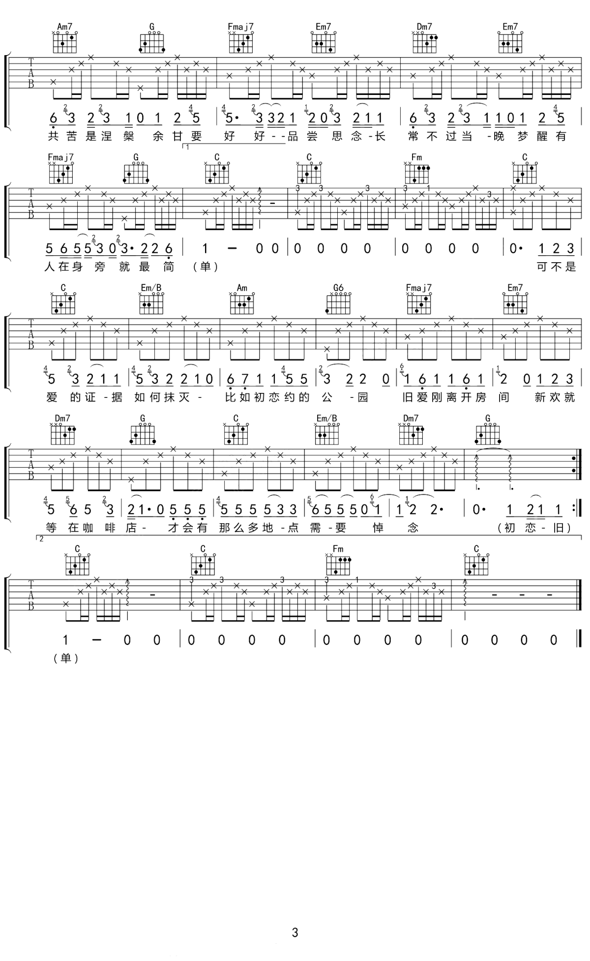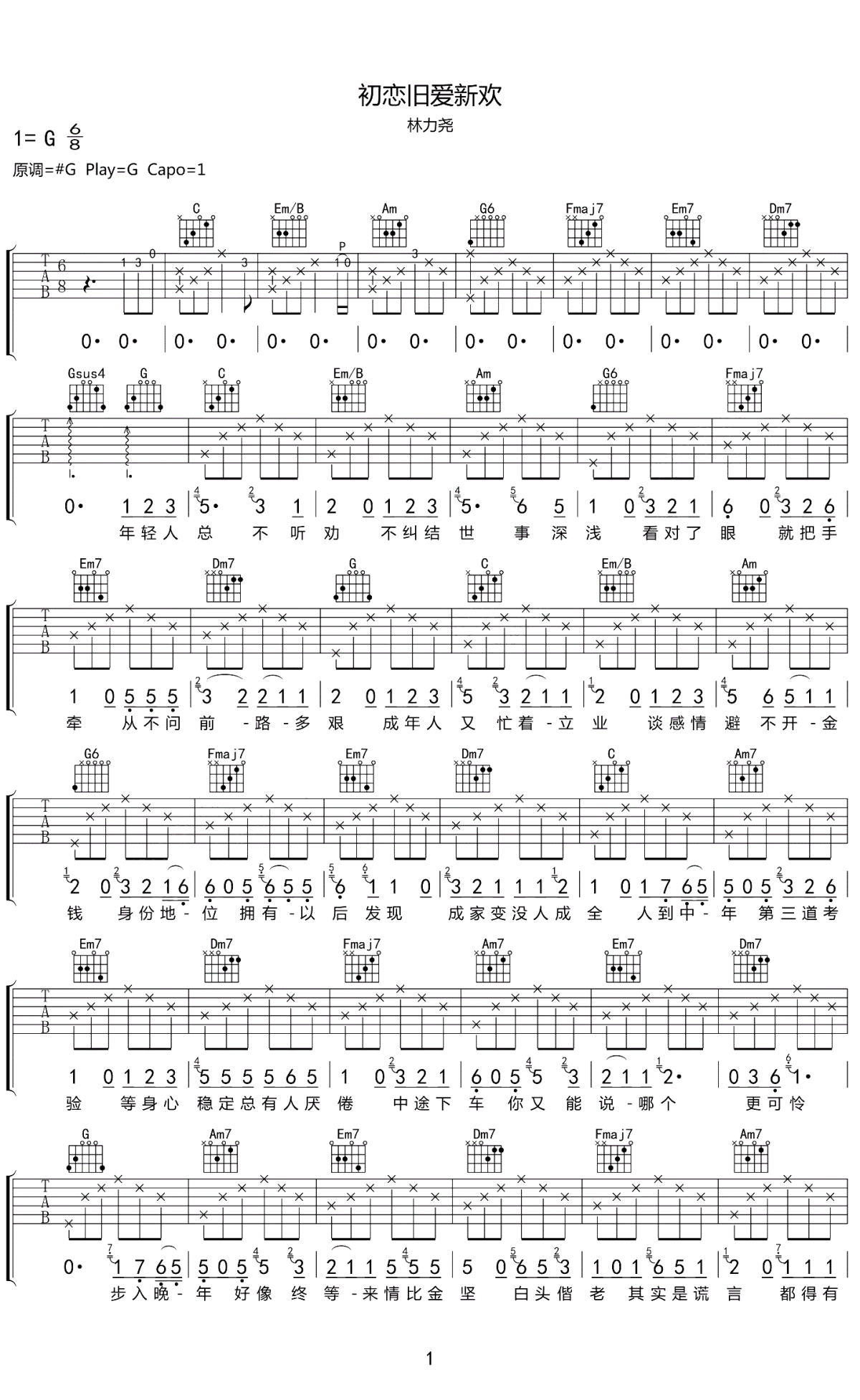 > 初恋旧爱新欢 G调指法编配