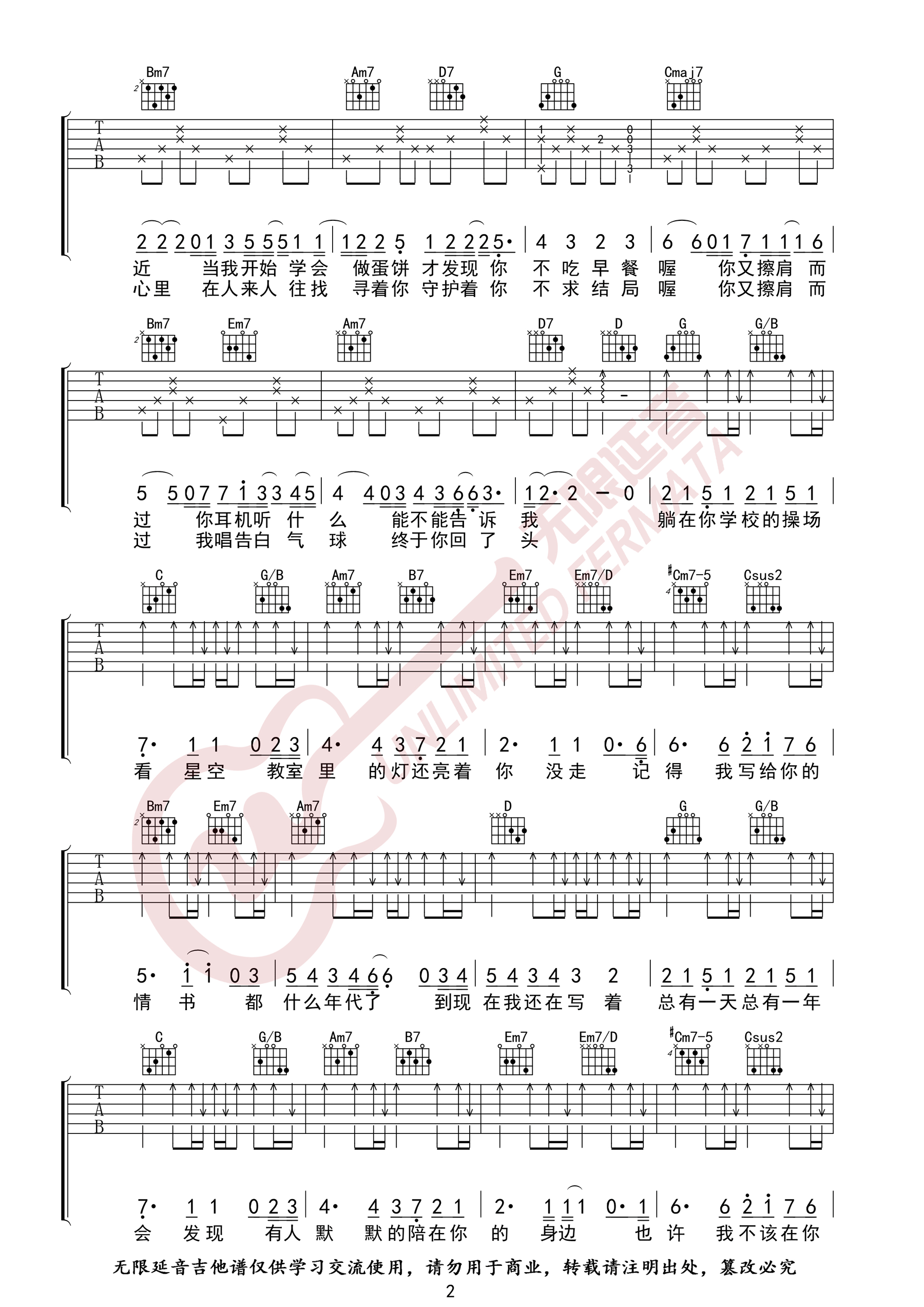 > 等你下课 G调指法原版编配