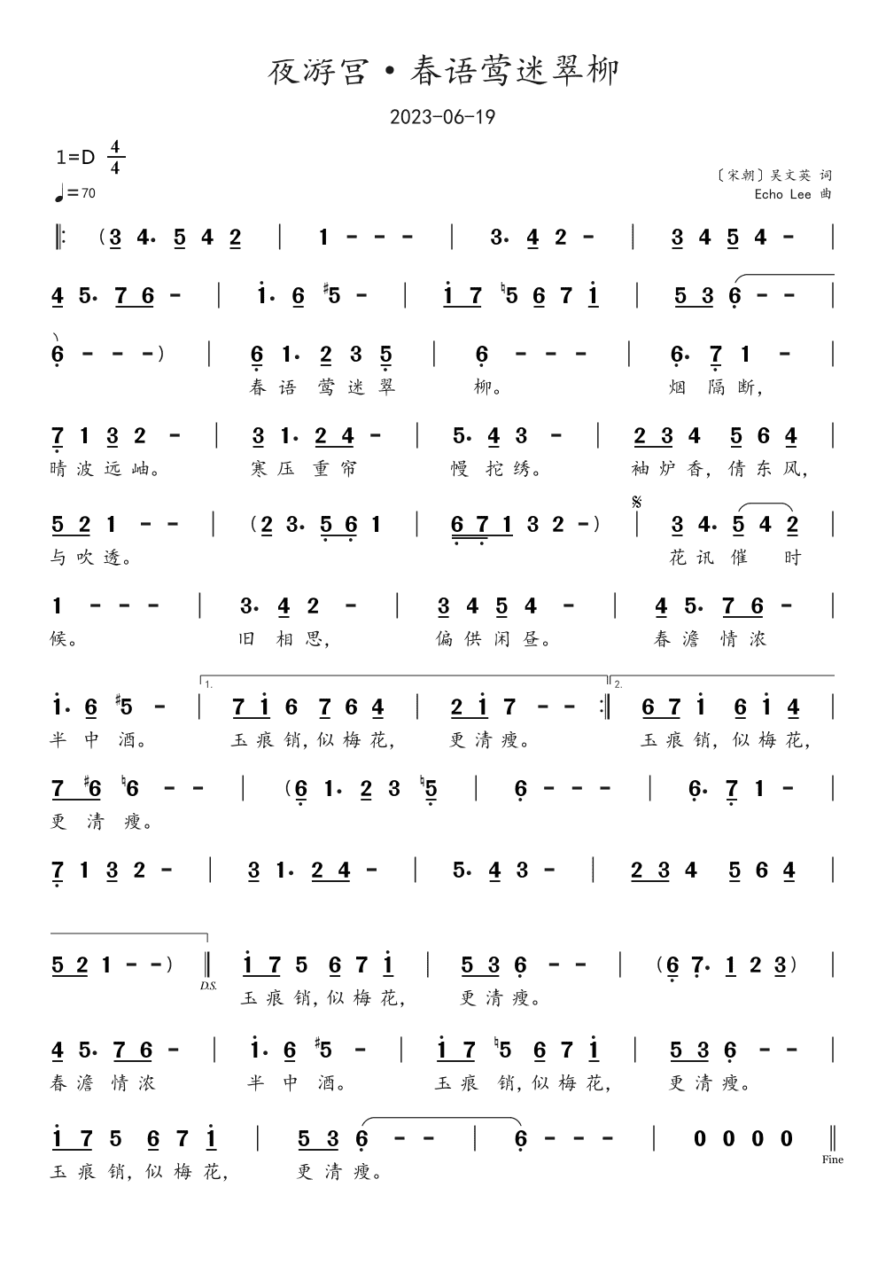 > 夜游宫 春语莺迷翠柳