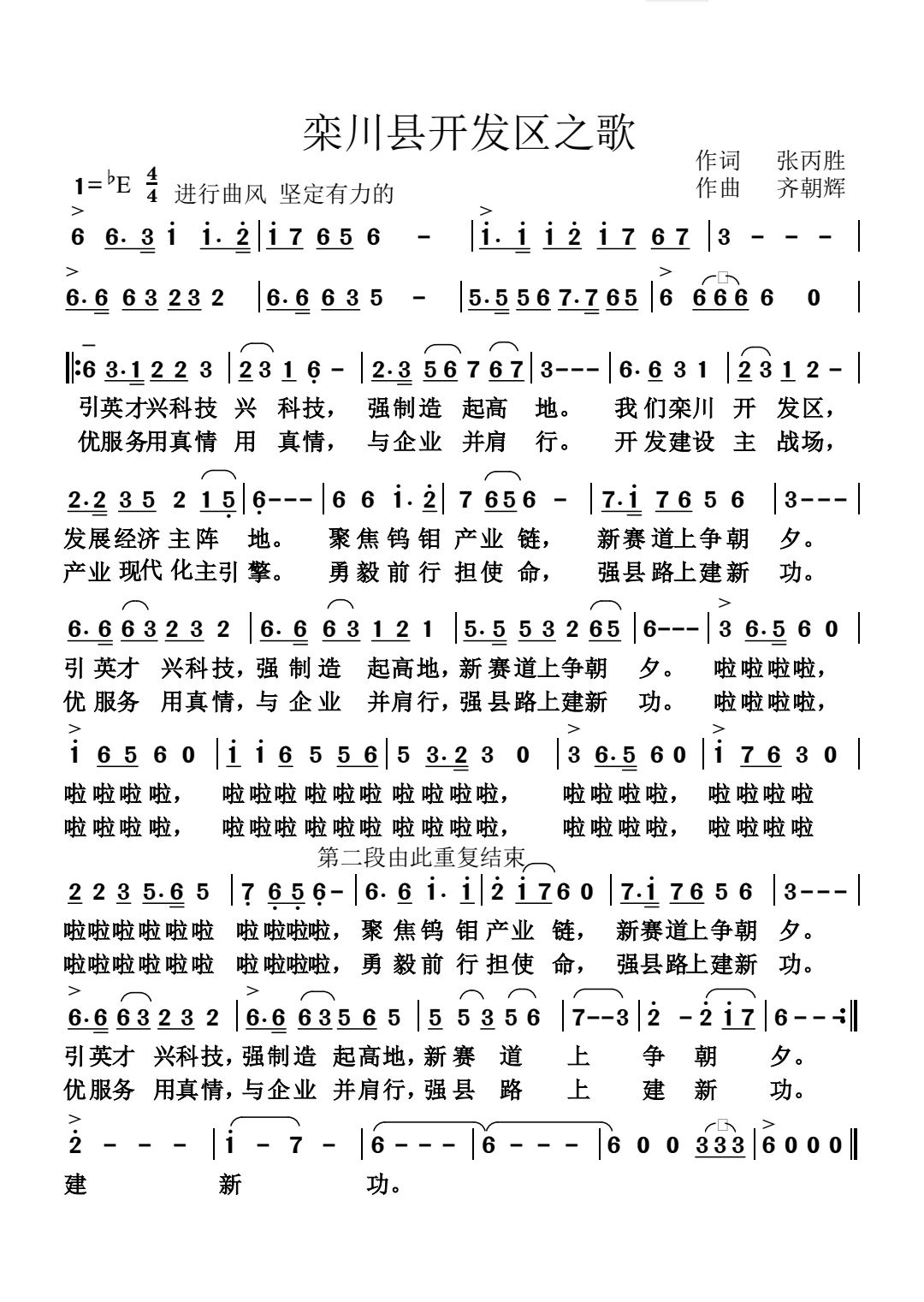 > 栾川开发区之歌