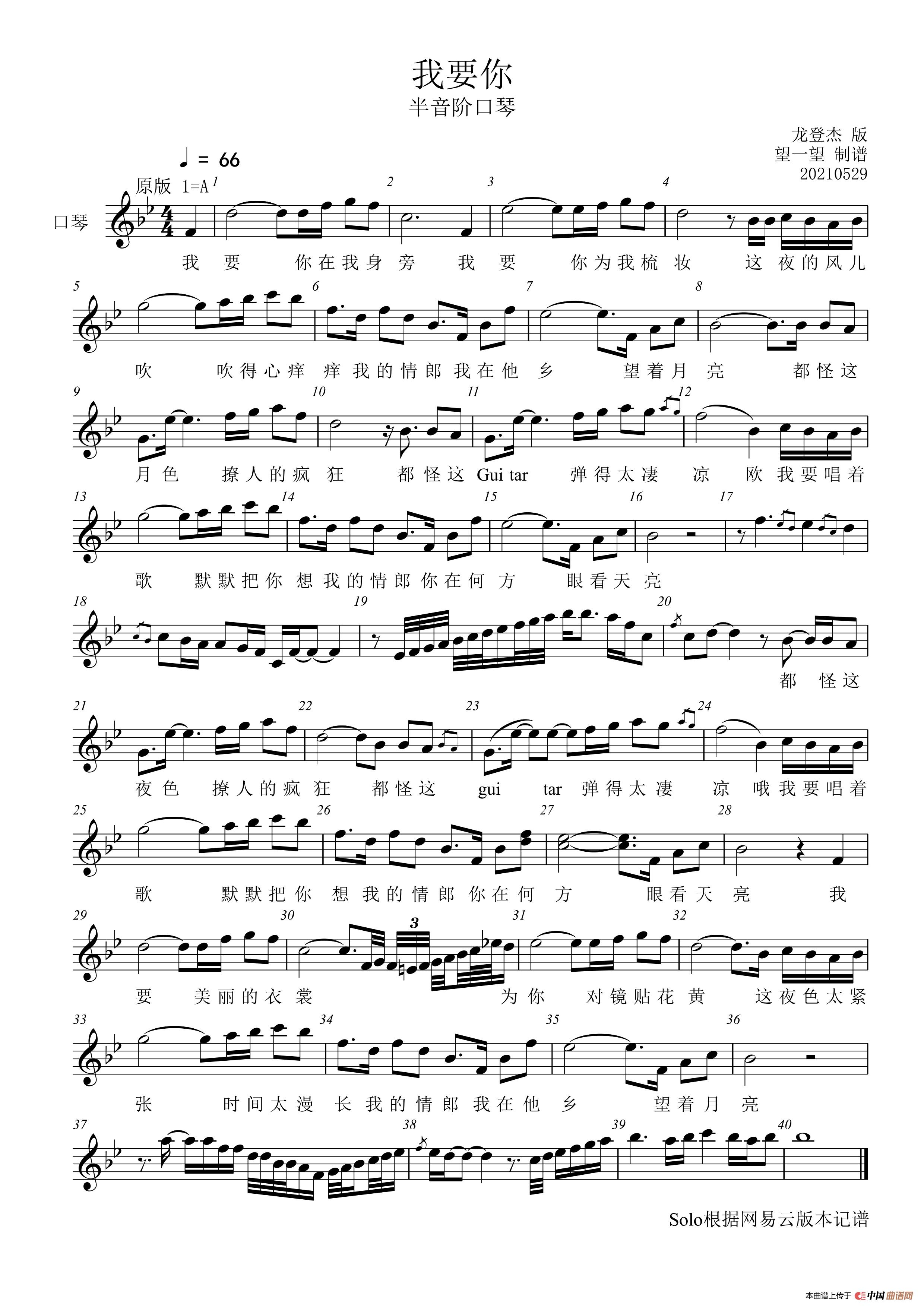 20 9 我要你 Bb 首调 半音阶口琴