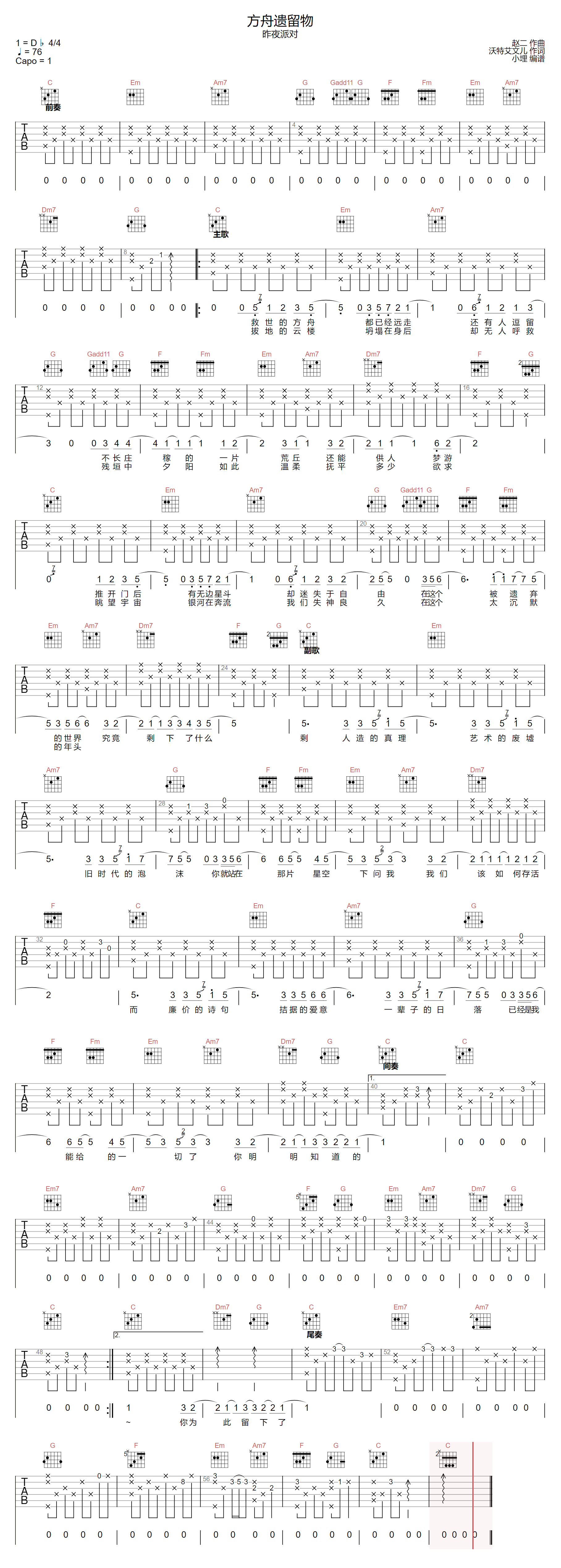 > 方舟遗留物 C调指法编配