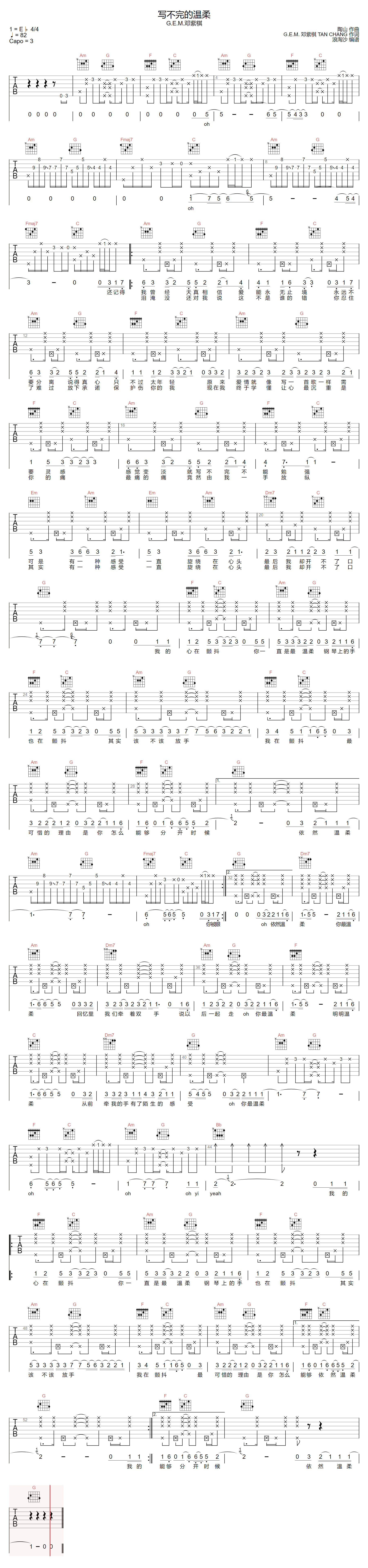 > 写不完的温柔 C调原版编配