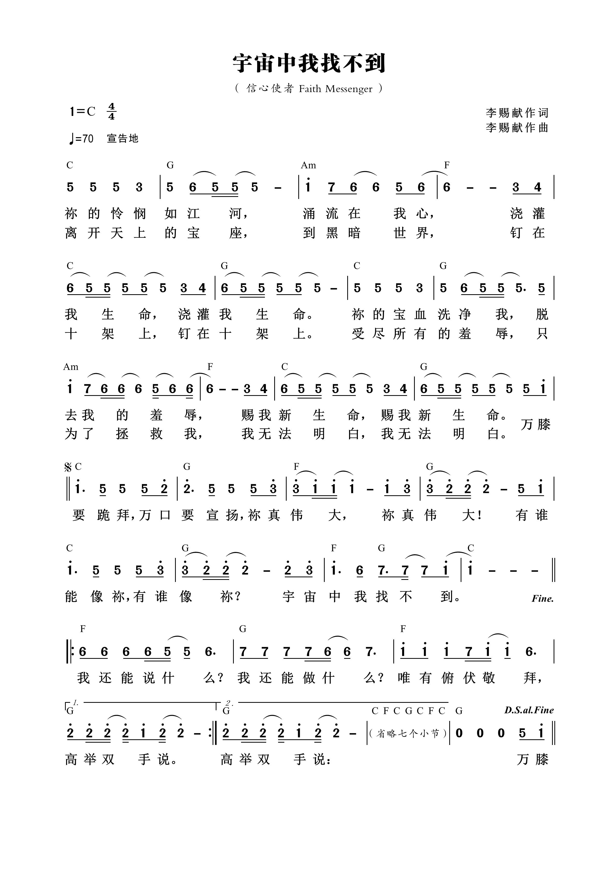 > 宇宙中我找不到 第836首