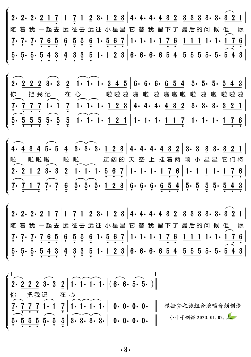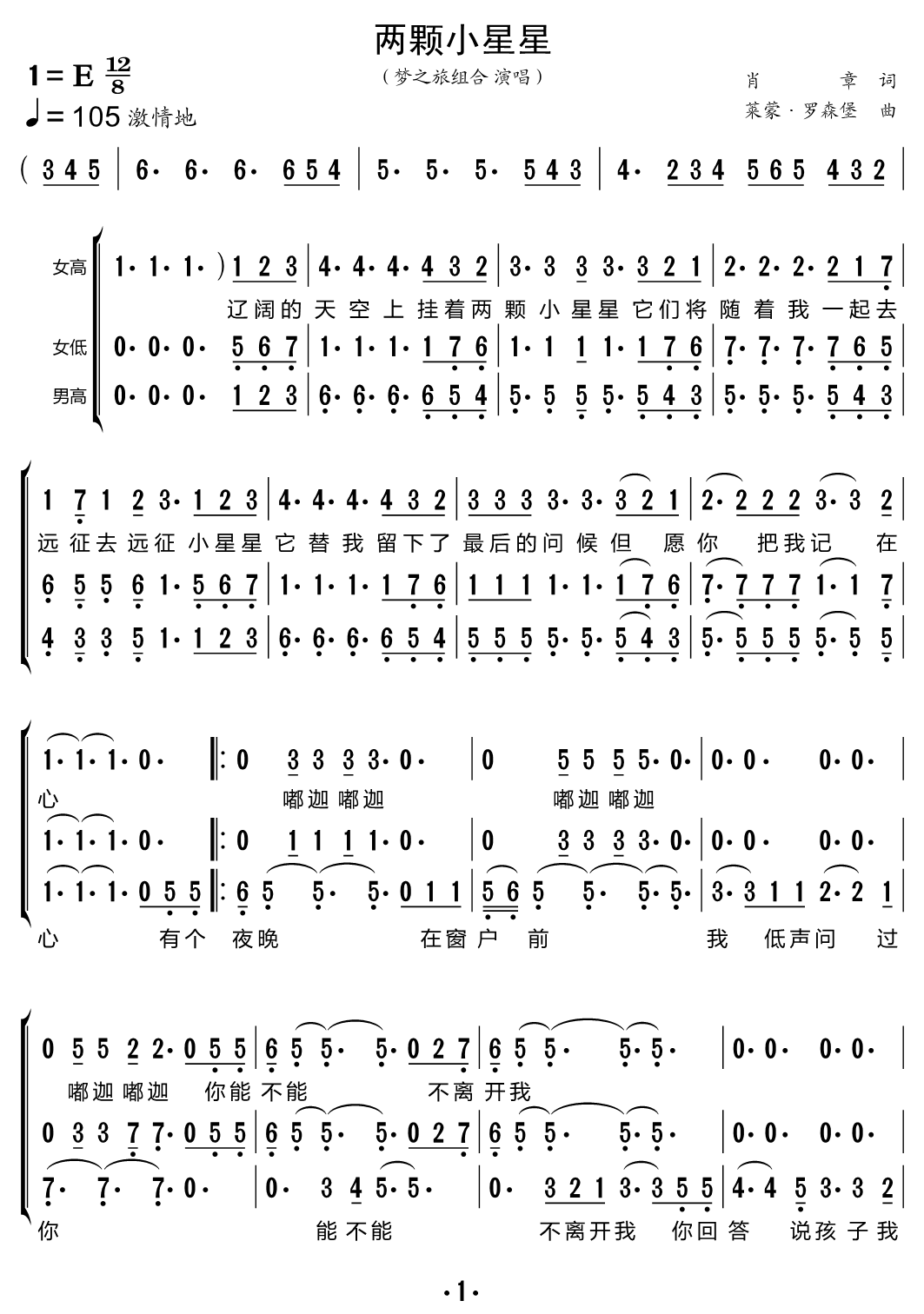 两颗小星星 三重唱