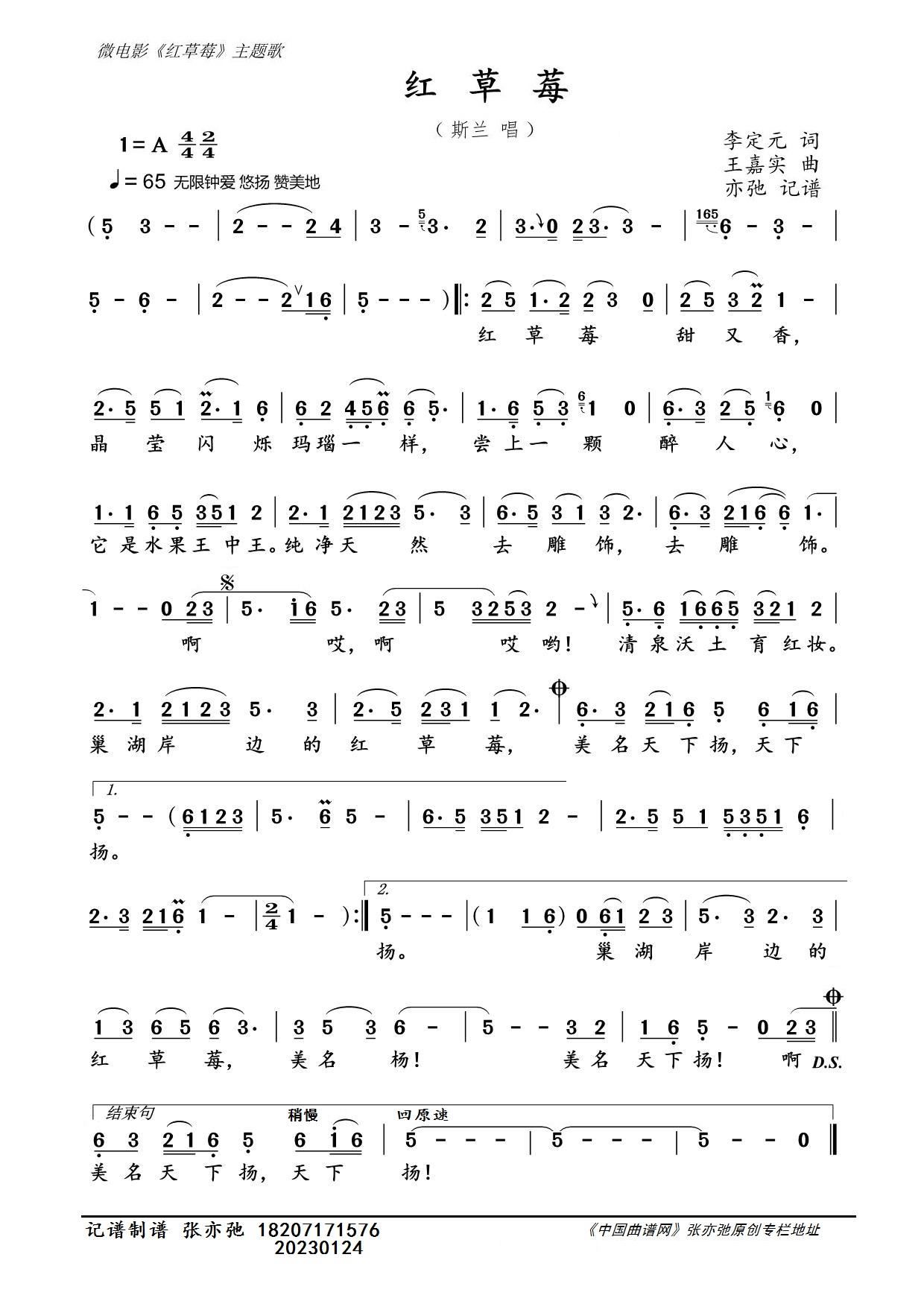 > 红草莓 亦弛记谱