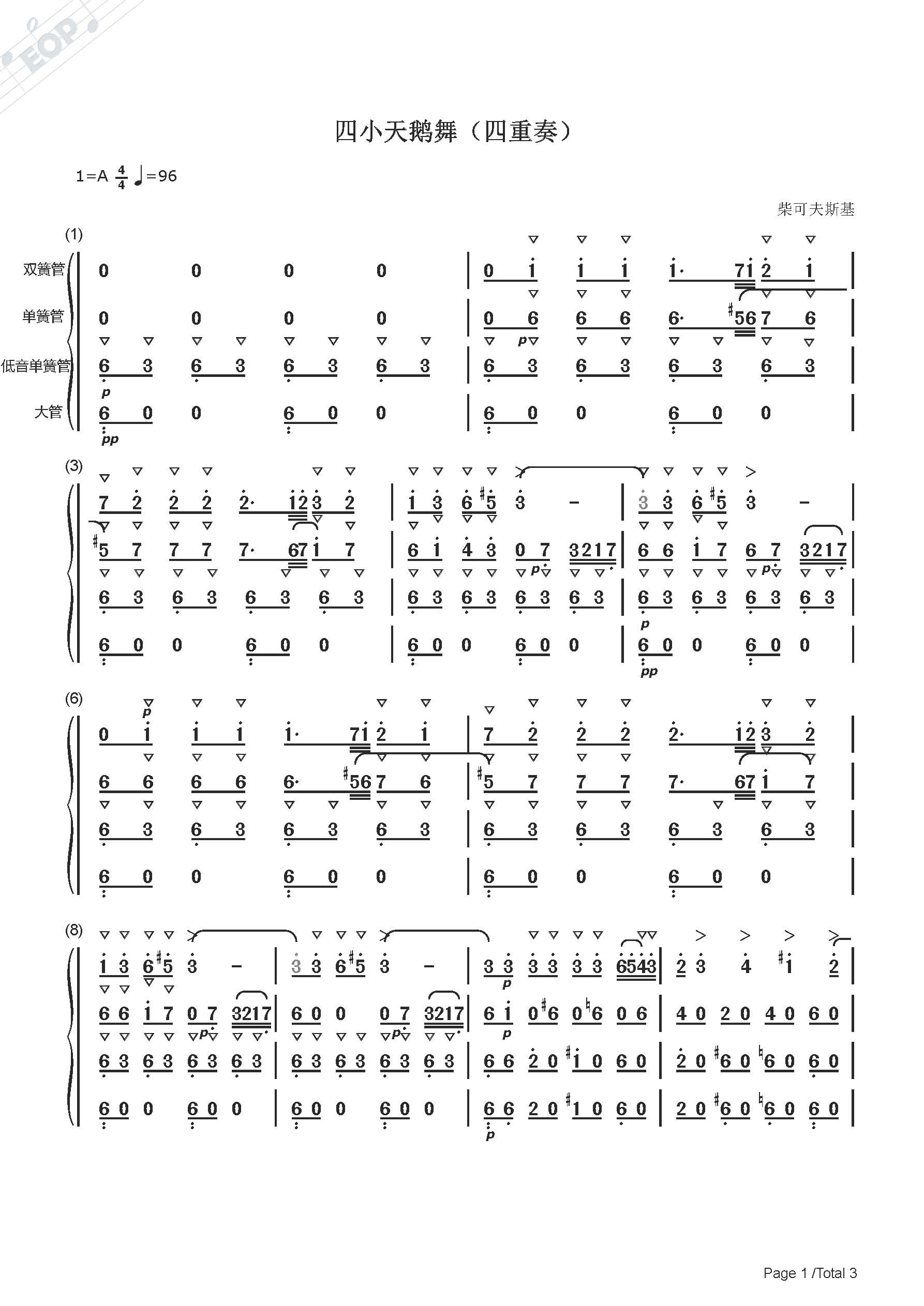 柴可夫斯基 四小天鹅舞 木管四重奏