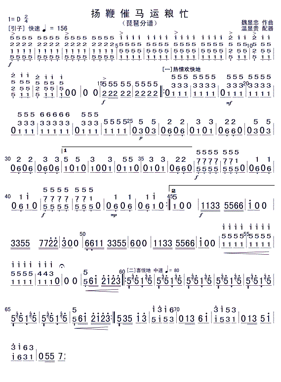 > 扬鞭催马运粮忙 琵琶 1