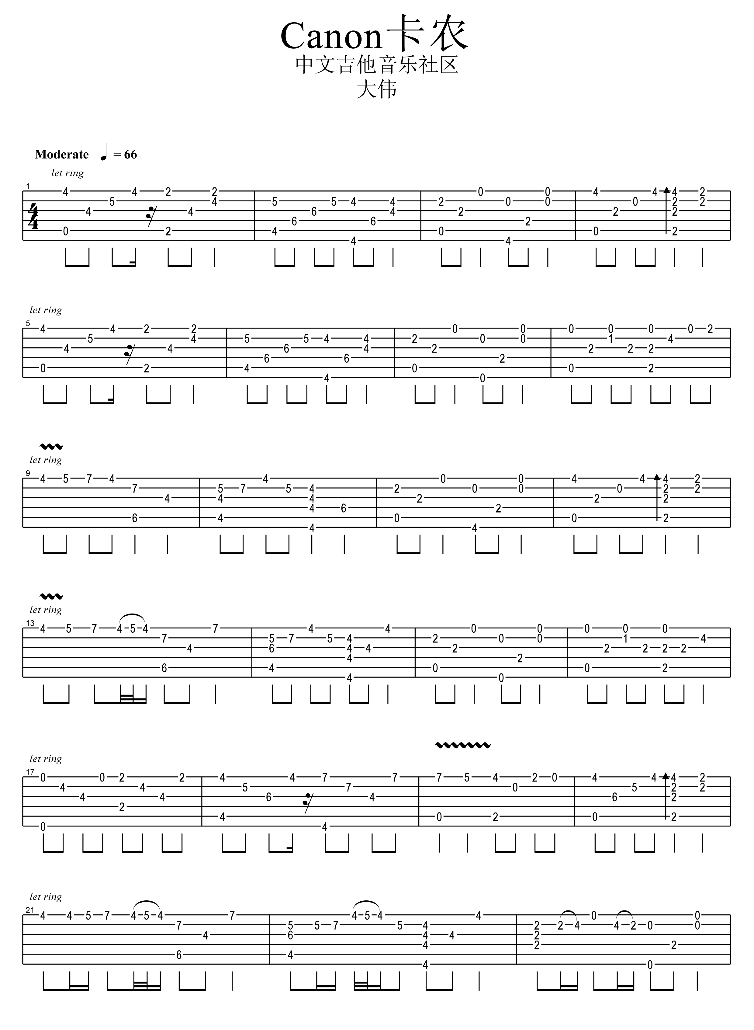 卡农指弹 大伟E调版本 独奏