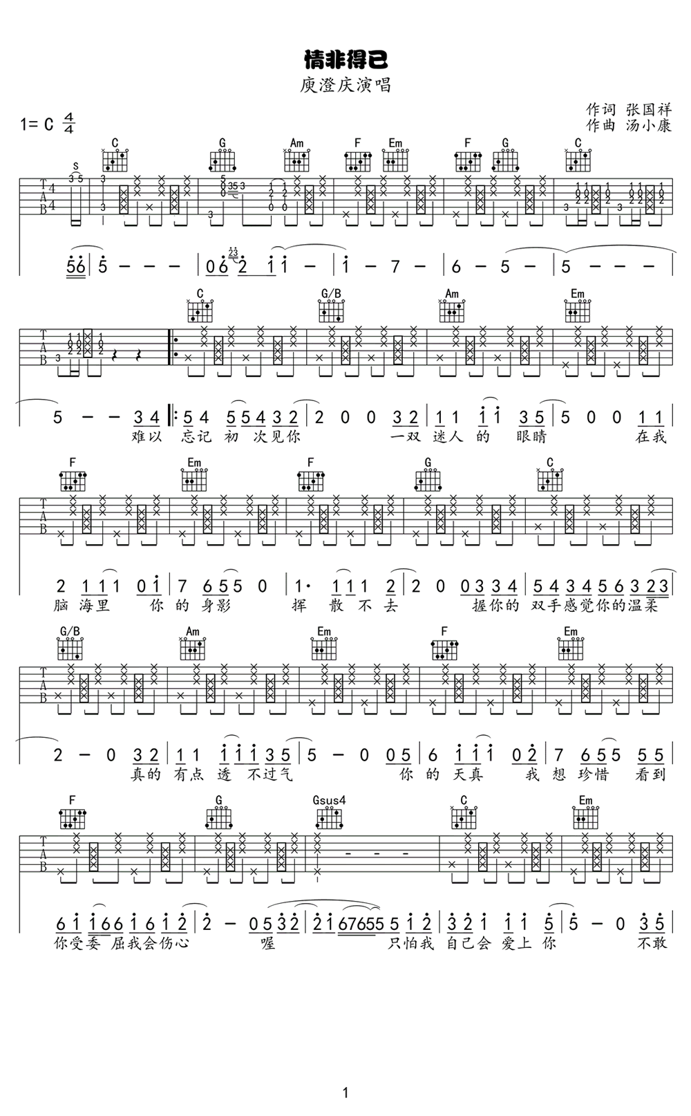 > 情非得已 C调拍弦版