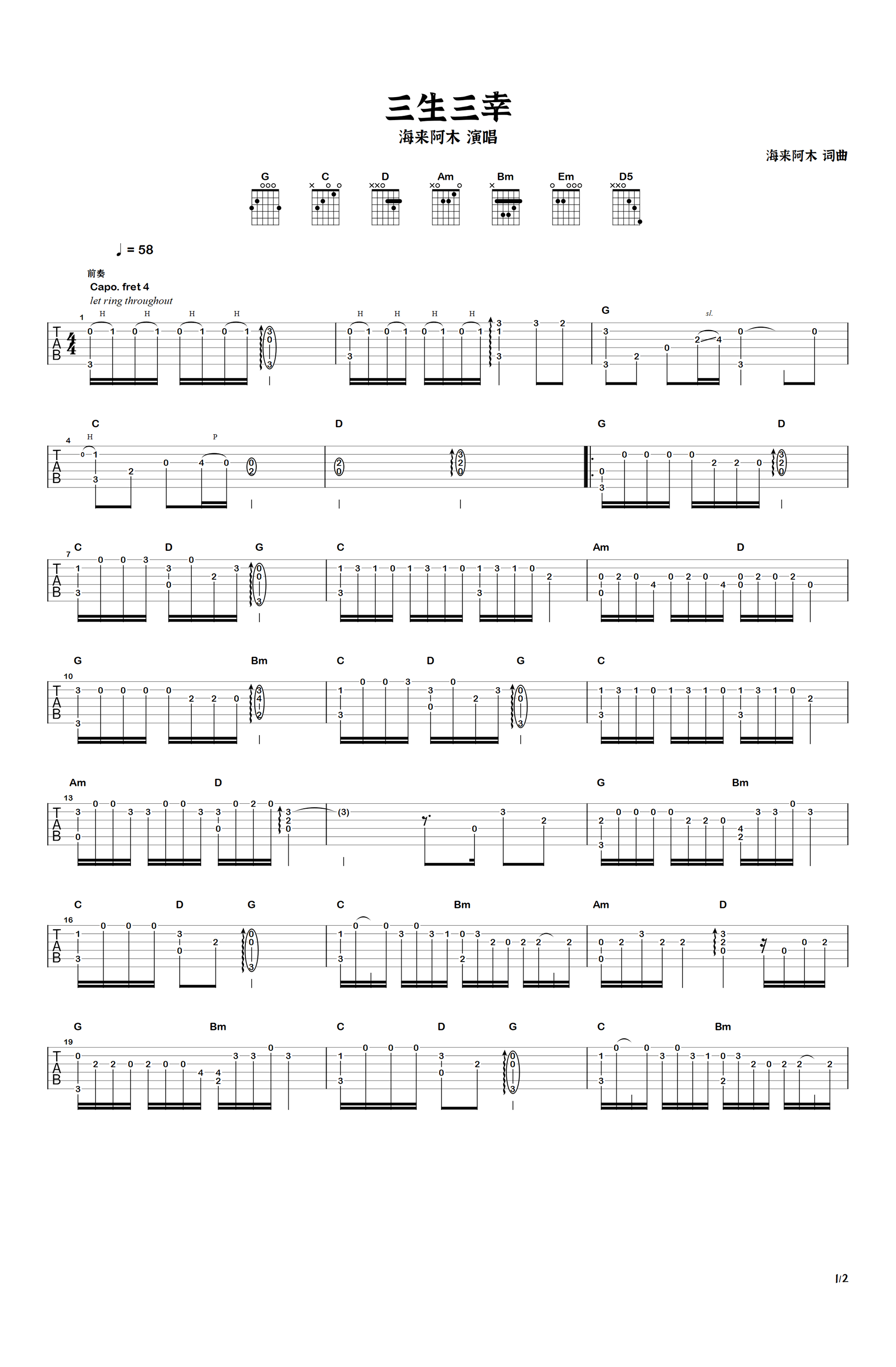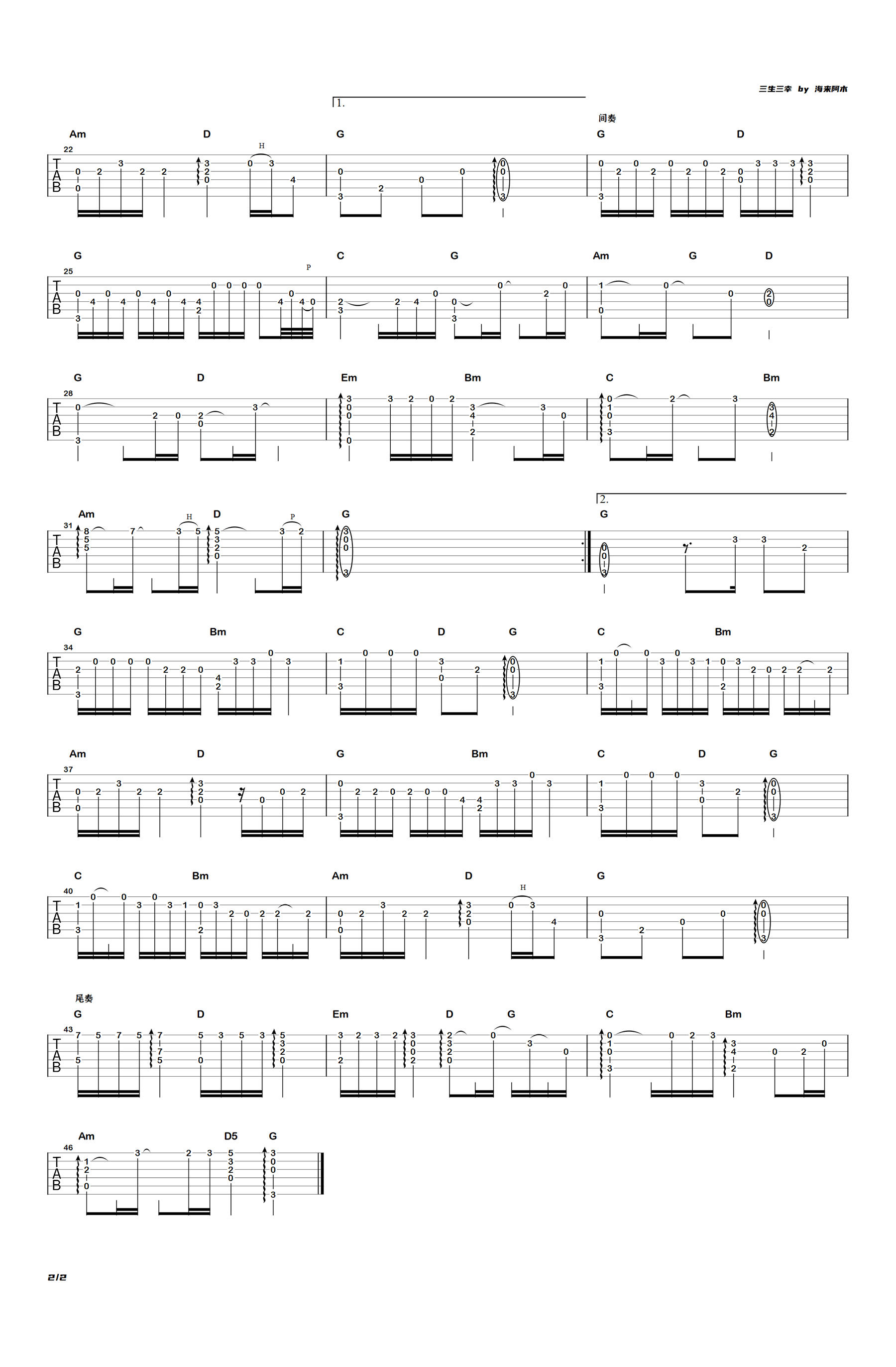> 三生三幸指弹 独奏