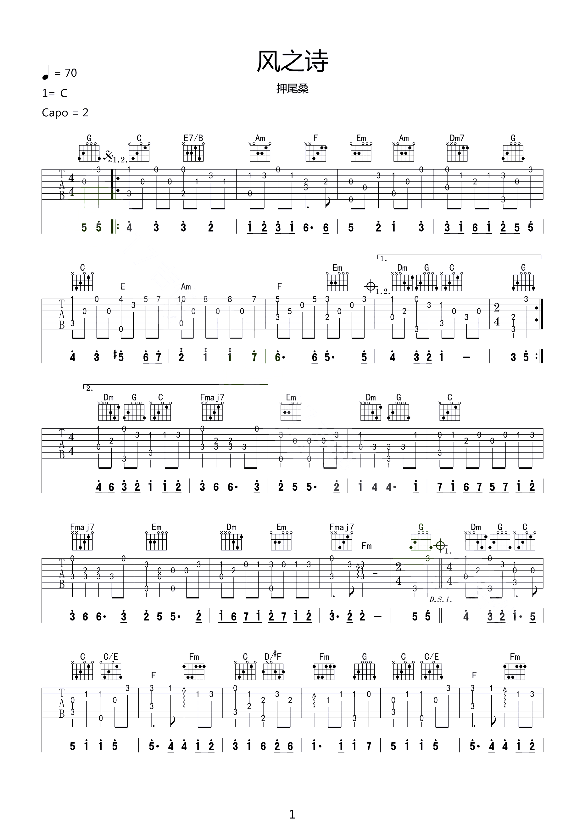 风之诗指弹 带和弦独奏