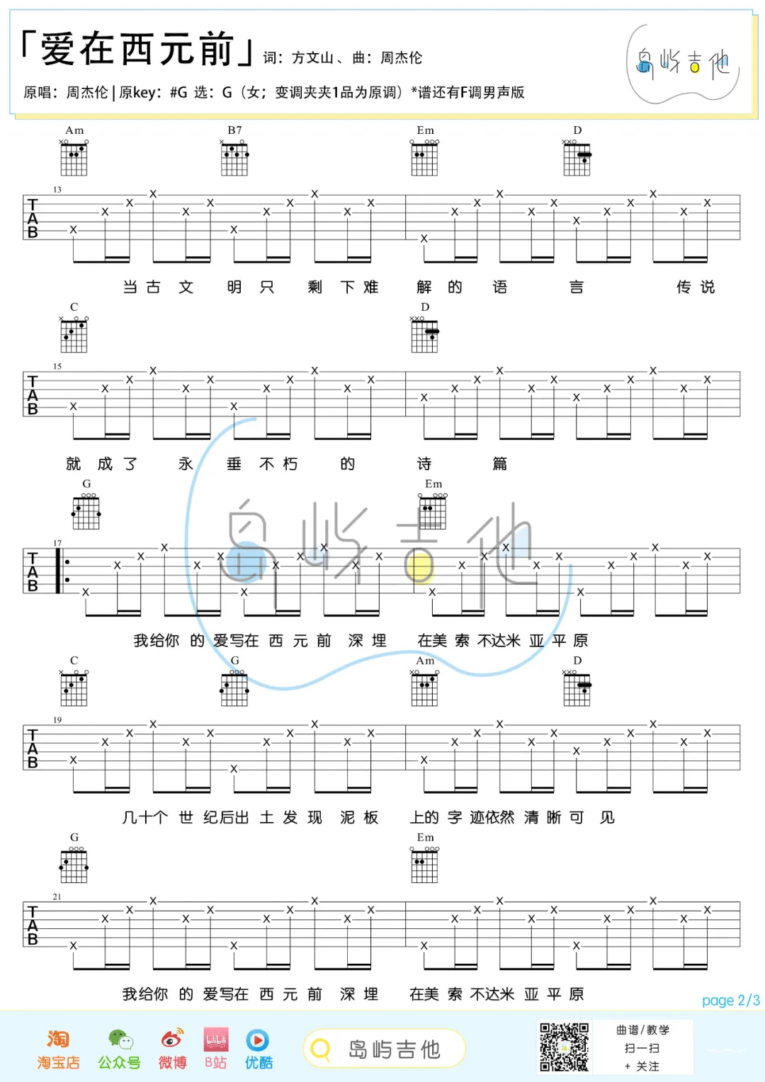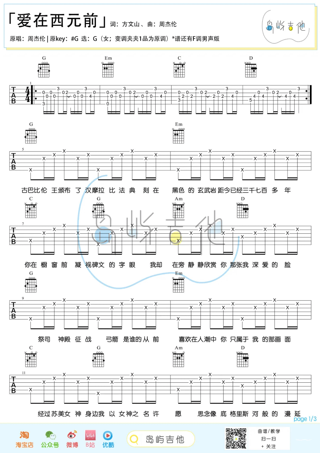 > 爱在西元前 G调编配